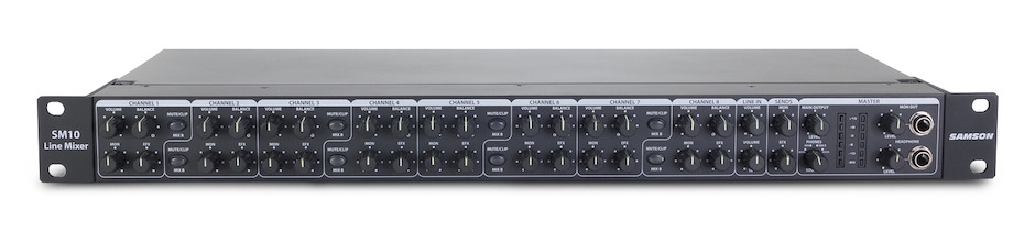 Hvad enten det er i live-sammenhæng, i studiet eller i andre lydinstallationer, er Samson SM10 en pålidelig enhed i din lydrig. Denne 19" rack-enhed med robust metal-chassis integreres let i dit system for at kunne gruppere signalerne på en mere effektiv måde. SM10 har ti kanaler med 1/4" stereo lineindgange og panoreringskontrol for hver kanal. To af kanalerne har desuden XLR-indgange med 48v phantomspænding. Hver kanal har en switch for +4dBu eller -10dBV indgangsignal.