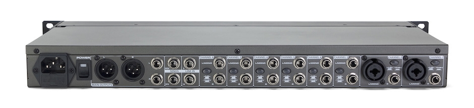- Ti kanaler (balanceret 1/4" jack, to med XLR mikrofonindgange)