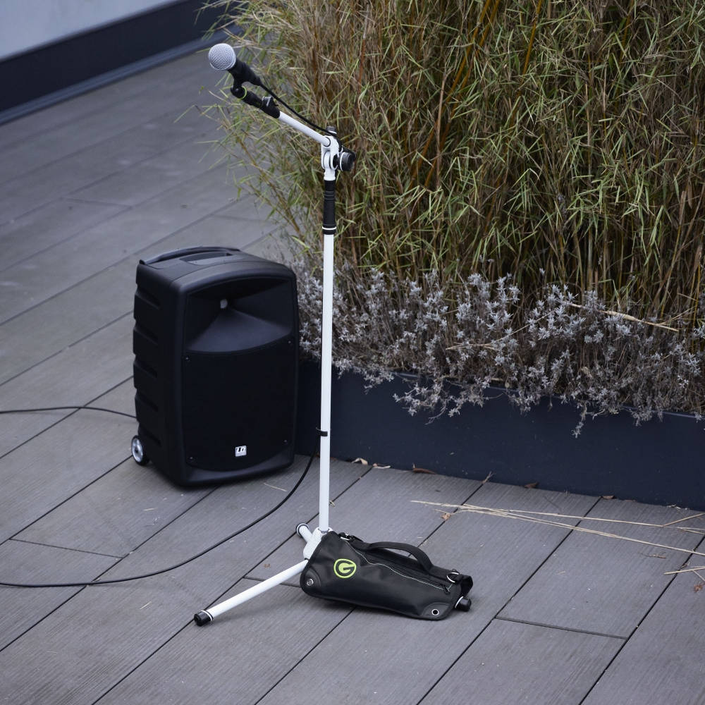 Everything has been prepped and the event can begin - then someone accidentally knocks over a stand and the real fun begins. To ensure that valuable pieces of equipment - microphones, speakers, spotlights and more - are stable and secure, the Gravity® portfolio now includes the new BG SB sandbags - individually fillable bags for easy attachment to stand legs. In addition to stage use, the BG SB bags also ensure greater safety in film and photography work - for example when a diffuser or softbox needs to be raised to great height over a C-stand The bags also stabilize equipment when using Content Creator and Videocaster, which for optical reasons work with a long boom arm or a lighter table stand. The Gravity® sandbag keeps you rock steady.