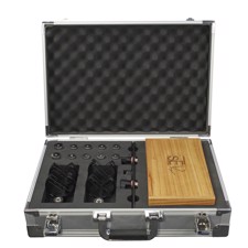 This configuration also includes a precision stereo mounting bar, two shock mounts, a wooden presentation case, and empty canisters for future capsule additions. The whole setup comes packaged inside a secure flight case.
