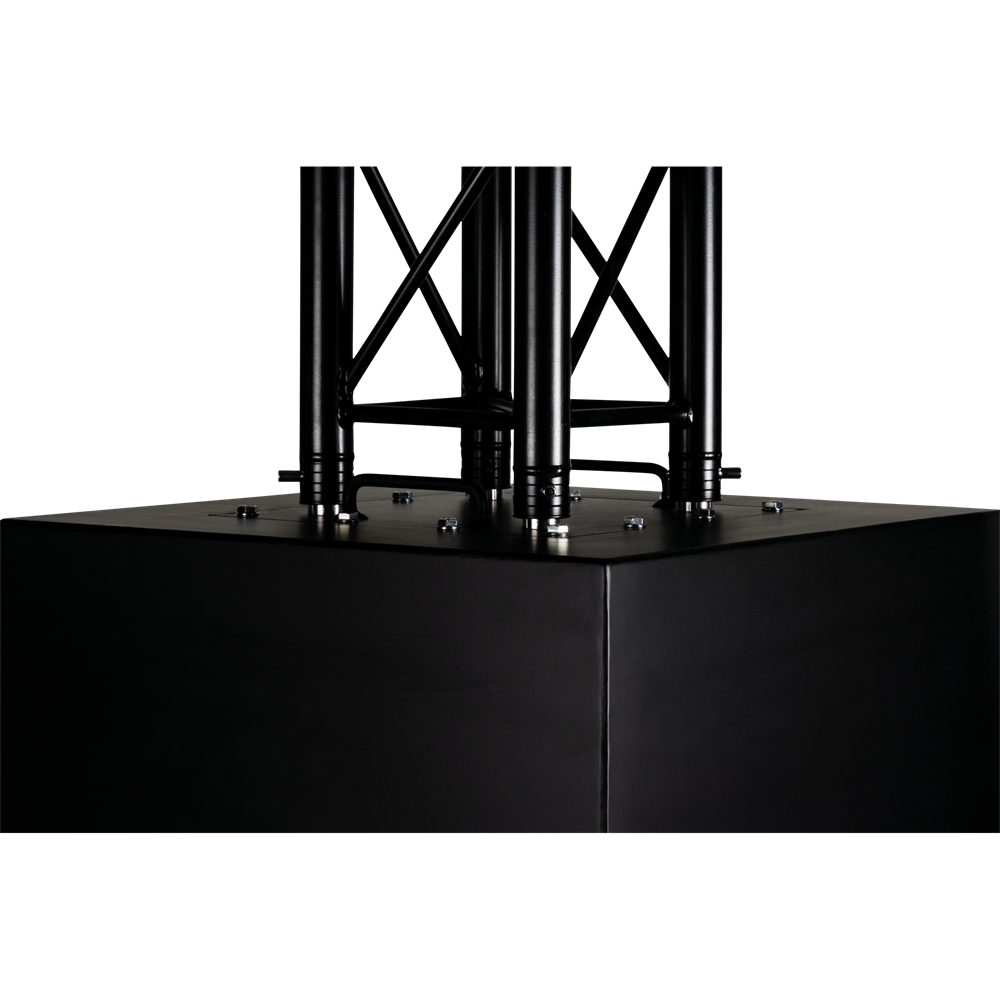 The Ballast Counterweight for P Truss is a robust and reliable solution for stabilising truss constructions in demanding environments. Specially designed for use with P-type truss systems, this robust counterweight consists of a durable steel container filled with solid concrete, offering reliable support for both indoor and outdoor setups. With its compact footprint and matte black finish, it blends seamlessly into professional stage, event, and exhibition environments.