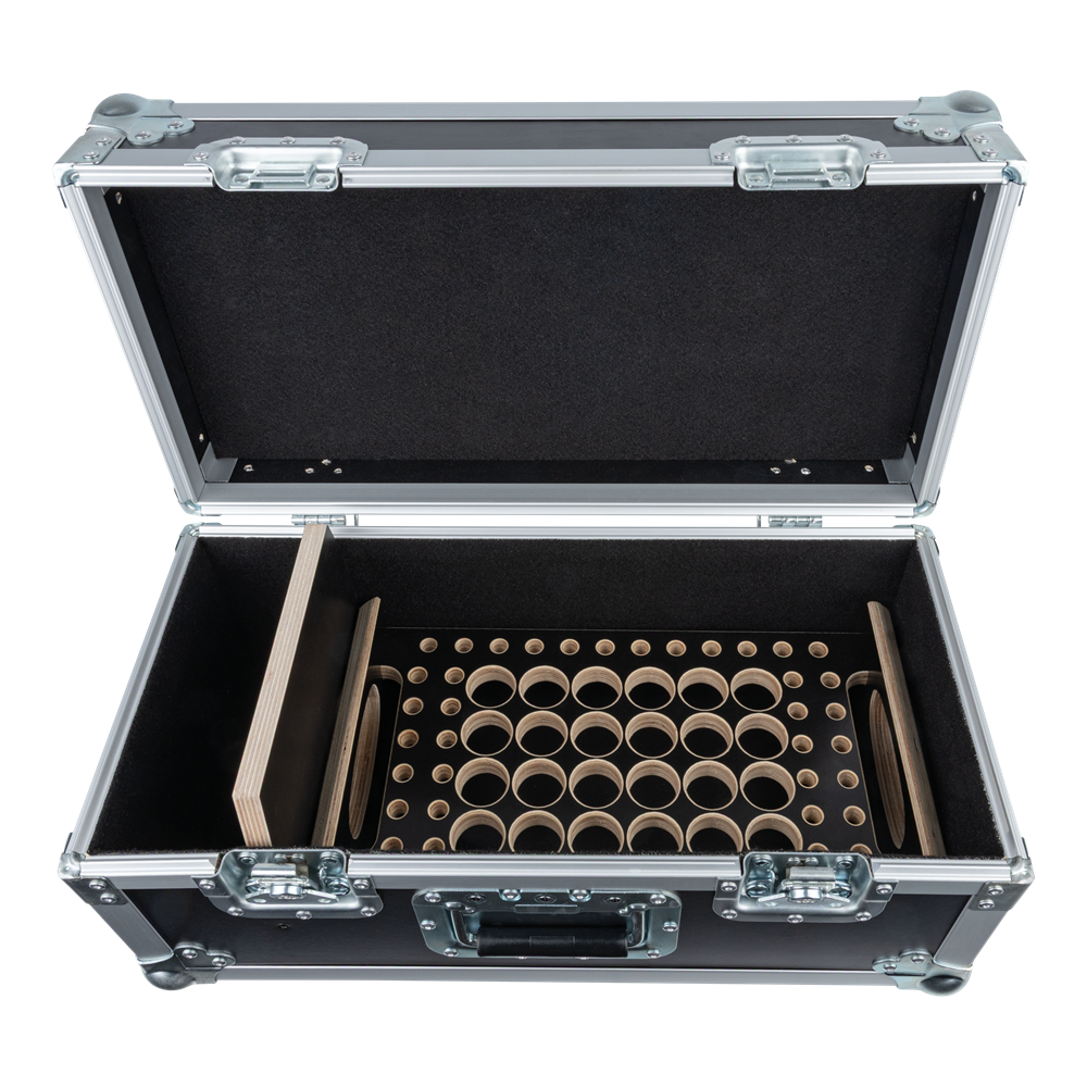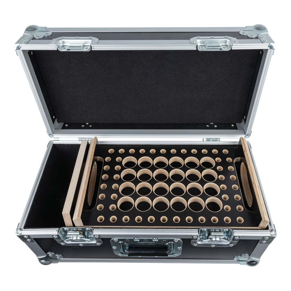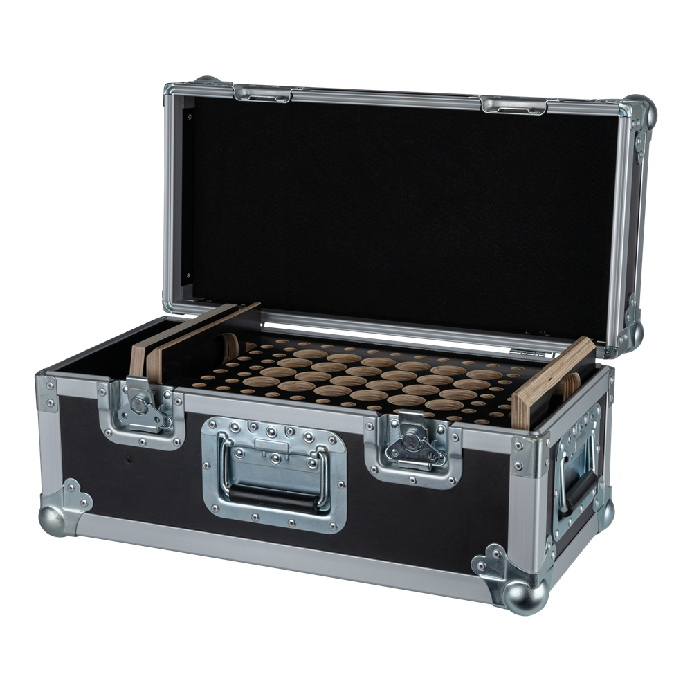 The Showgear Conical Adapter Case 1 is designed to hold up to 48 spigots and 96 pins, offering a clear and organised solution for rigging setups (pins and spigots not included). Each component has its own designated slot, giving you an instant visual overview - making it easy to spot missing parts before heading out or during teardown. By streamlining your workflow and reducing the risk of forgotten items, this case saves valuable time and prevents frustration when building or dismantling a truss system. Built with professional-grade Penn Elcom hardware, it ensures long-lasting durability and ease of use. A small additional compartment offers space for extra accessories, keeping everything you need in one reliable case. The Conical Adapter Case comes with two adapter inlays.