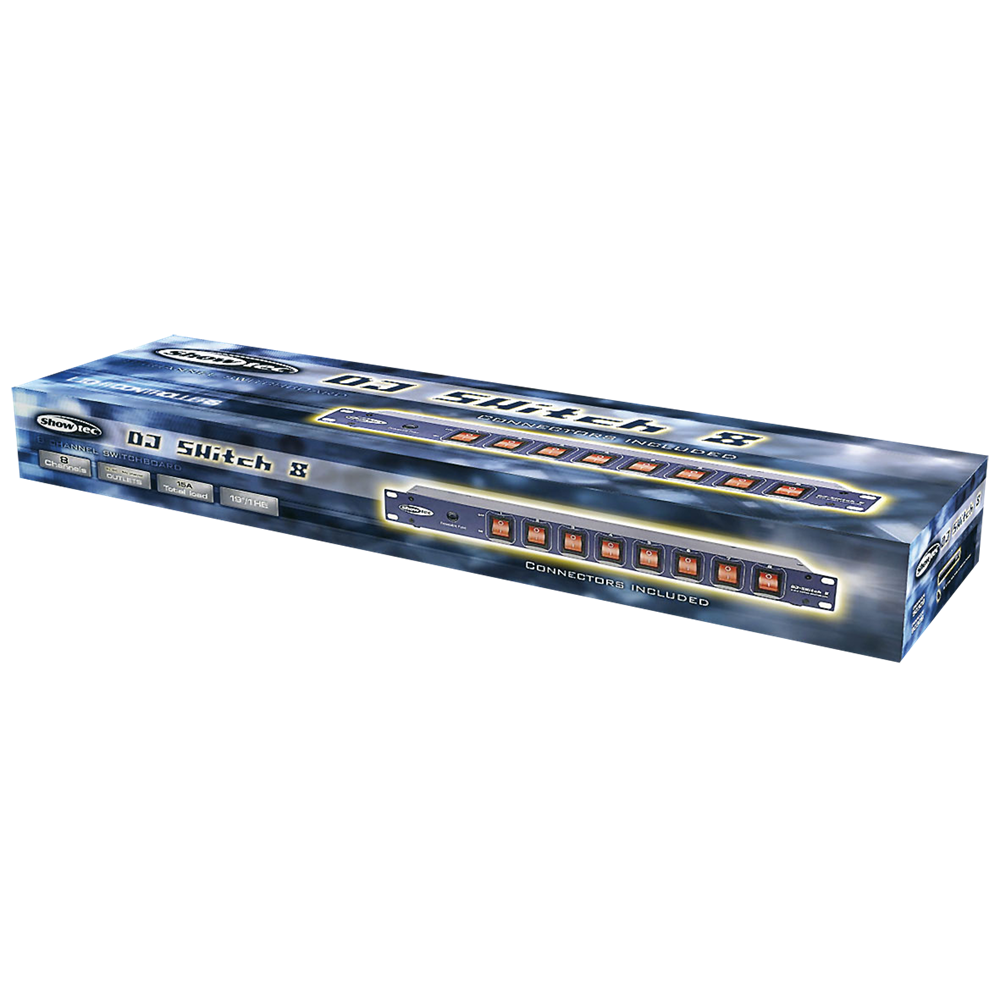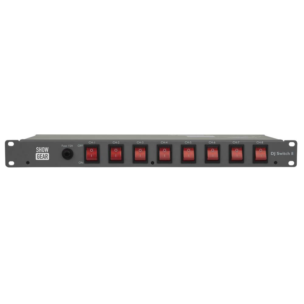 8-kanals switchboard. IEC-udtag på bagsiden 10 A pr. kanal. 15 A samlet belastning. Sikring på frontpanelet.