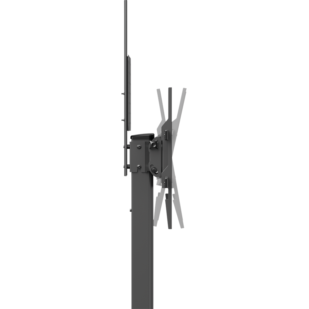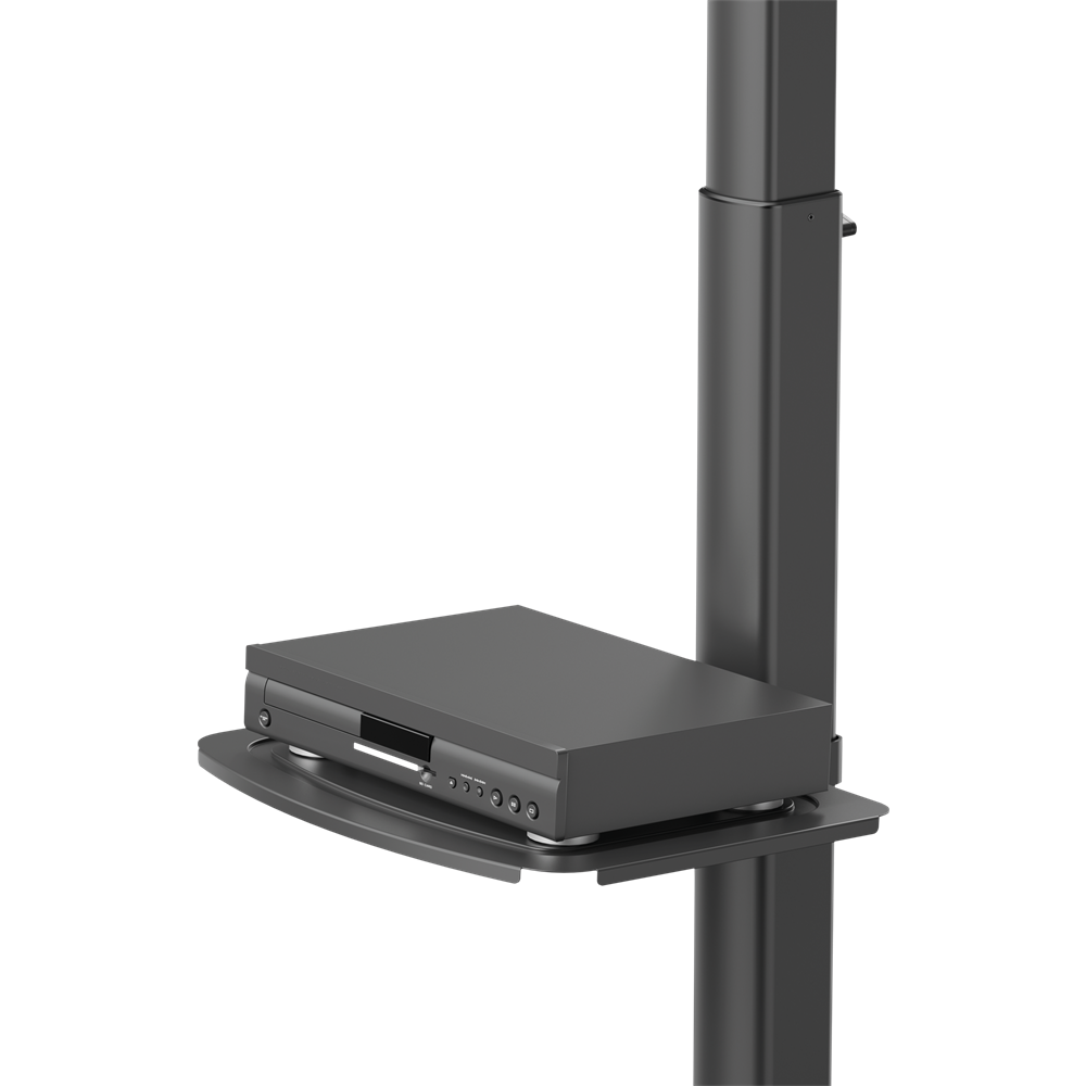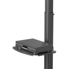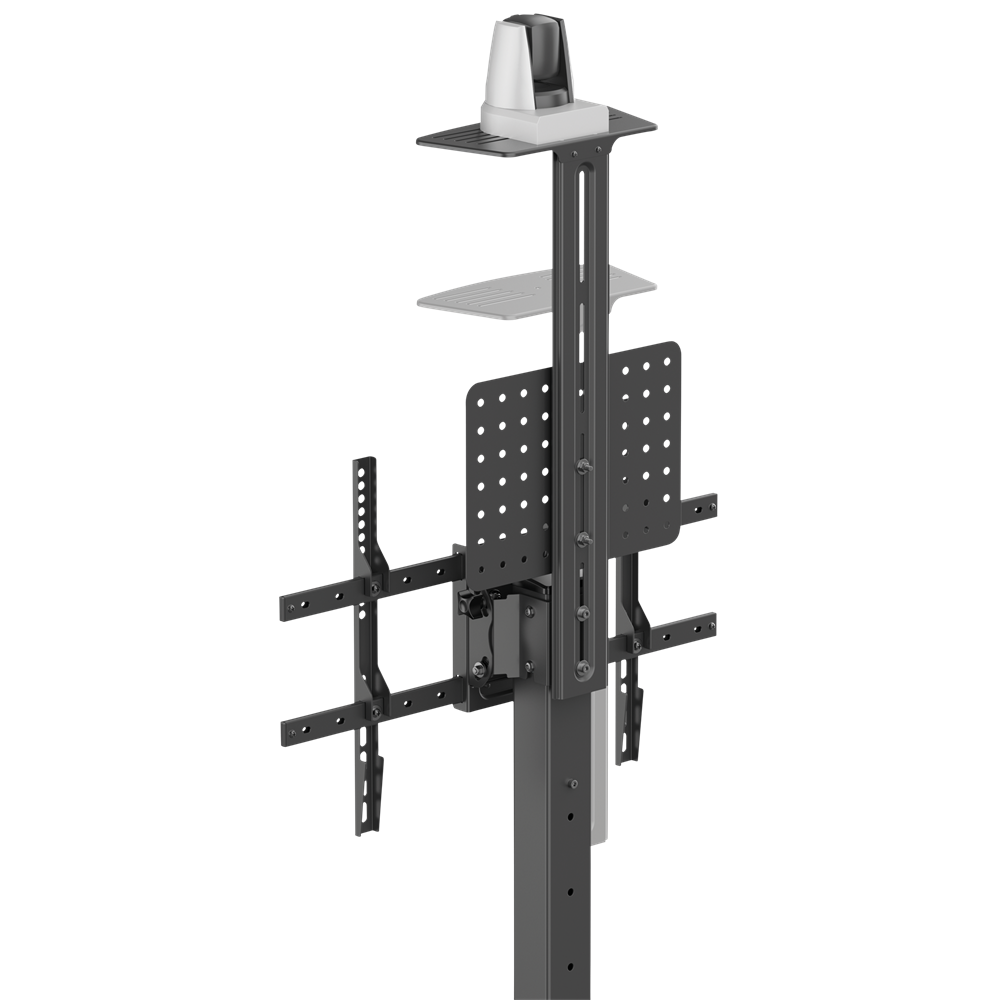 Den har en hurtig-release fjederlås til nem højdejustering, sammen med en værktøjsfri tilt-funktion (+5° til -12°) for optimal visningskomfort. Vogncen understøtter både portræt- og landskabsorientering og indeholder højdejusterbare hylder til AV-udstyr og kameraer. Heavy-duty låsbare hjul sikrer nem mobilitet og stabilitet, mens integreret kabelføring holder alt pænt og ryddeligt.
