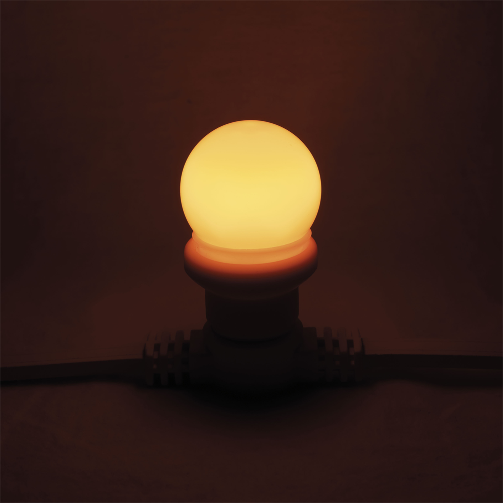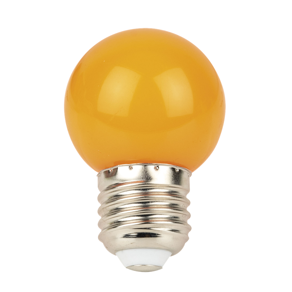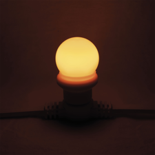 The Showgear G45 LED Bulb E27 is a small and compact 1 W LED bulb that fits an E27 lamp socket. The bulbs are made of shatterproof plastic. Ideal for decorative purposes, the bulb comes in a variety of colours including warm white, red, green, blue, yellow, orange, and pink.