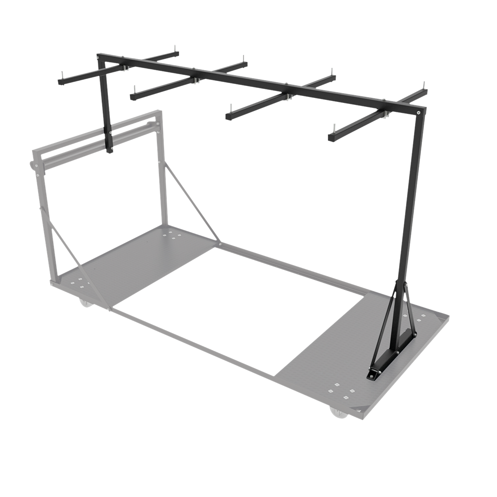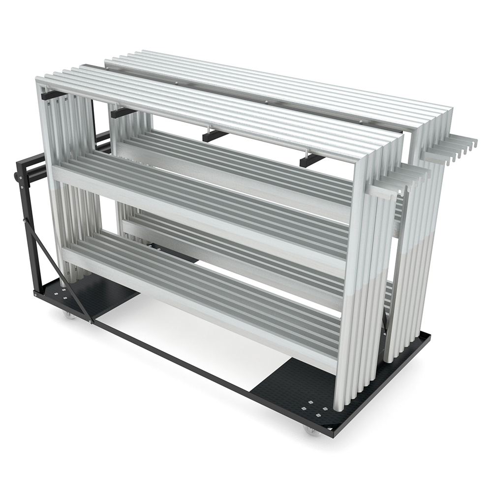 The Showgear Guard Rail Holder for Mammoth Transport Trolley is an extension to the Mammoth Transport Trolley for 10x Mammoth Stage/Dex that can hold any type of Mammoth Dex Guard Rail. It can hold up to 12 Guard Rails 2 m or 24 Guard Rails 1 m. It is also suitable for the Mammoth Dex XS guard rails.