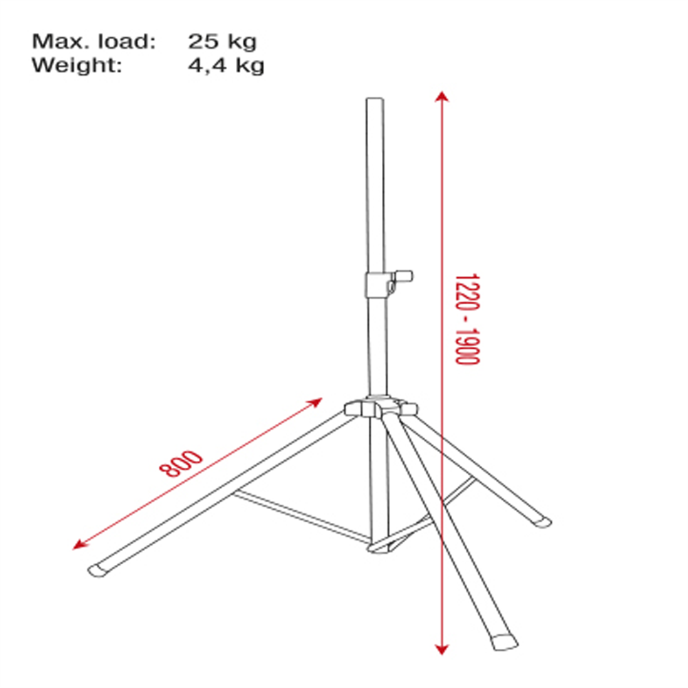 Her er du: Disconetto » Stativ, Scene & Truss » Audio Stativer » Højtaler stativer & Beslag » Højtaler stativ Sæt Showgear Højttalerstativ Sæt Inkl. Bæretaske På lager 3-8 hverdage Bedømmelse for Showgear Højttalerstativ Sæt Inkl. BæretaskeProduktet er endnu ikke bedømt 739,00DKK ved 1 stk. Vis uden moms Trustpilot Minimum Højde (mm)1220 mmMaksimum Højde (mm)1900 mmMaterialeAluminiumVægt4,4 kgMaksimal Belastning25 kgLåsetypeSkruknopMaksimal Længde Når Sammenfoldet1695 mm Varenr.: D8324