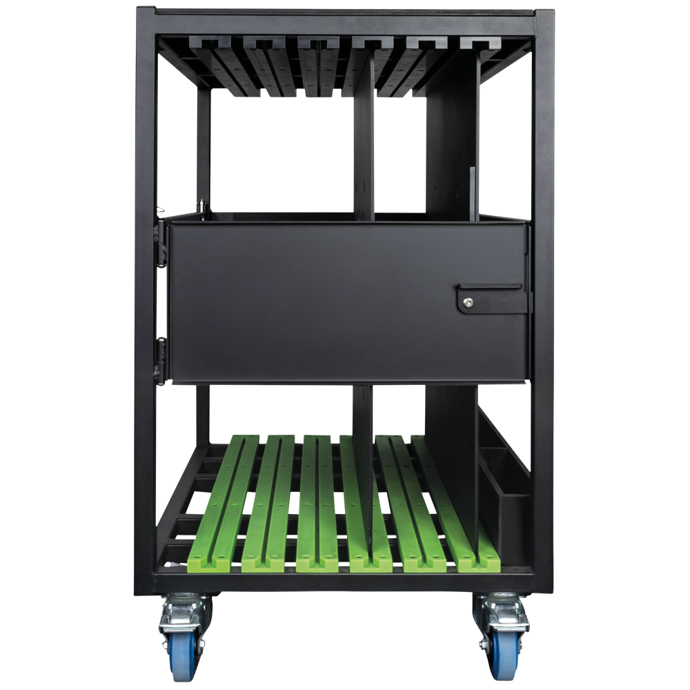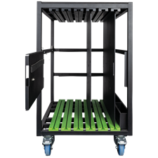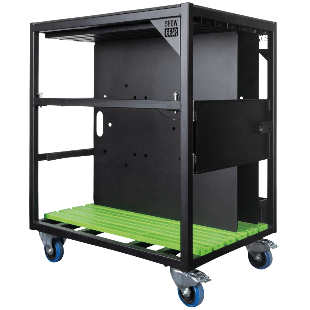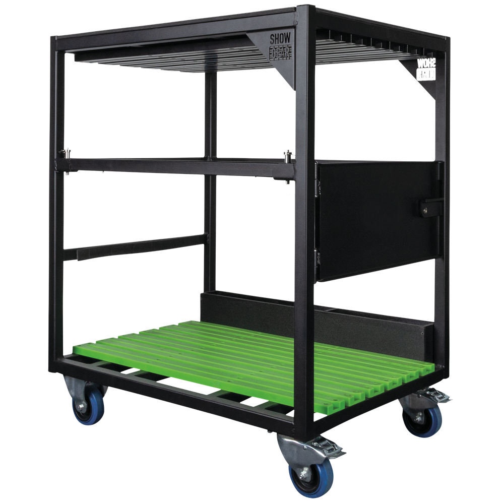 The Loadmaster Base Plate Trolley 750 is designed to store and transport up to 6 Universal Truss Baseplate 750s safely and securely. It also happens to be an ideal height for placing a controller on and has a removable side profile that offers technicians a comfortable sitting position when used as a controller table.