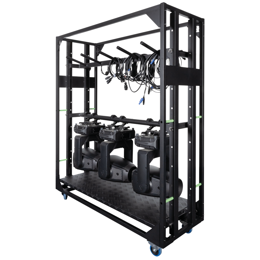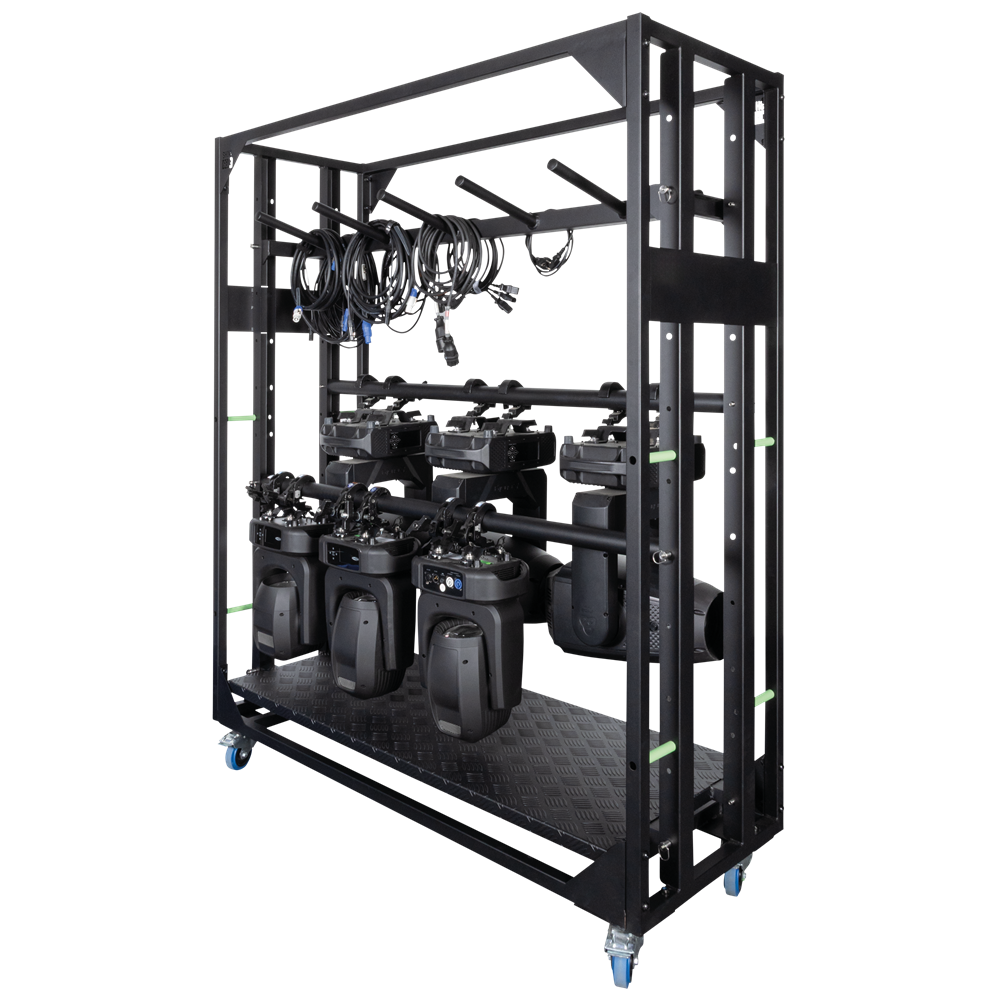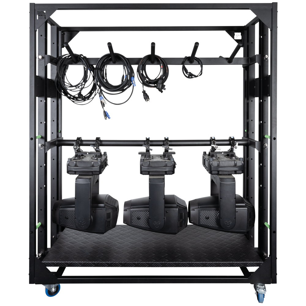The Showgear LoadMaster Rack 6x18 is a professional-grade meatrack designed for safe and efficient transport and storage of lighting fixtures. Its modular construction allows for quick assembly and flexible configuration, making it ideal for touring, rental, and venue applications. Delivered as a space-saving kit, it’s designed for easy handling and straightforward setup. With four swivel castors featuring brakes, it offers excellent manoeuvrability and stability. The rack is compatible with a range of optionally available accessories to tailor it to your specific needs.