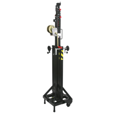 Denne teleskopiske wind-up stativ med aftagelige ben er perfekt til at hæve lydsystemer, belysning og truss. Den kan løfte belastninger op til 150 kg op til en højde på 5,3 meter. Sikkerhedsfunktioner omfatter en forstærket base, et automatisk benlåsesystem, sikkerhedspinde og en cirkulær boble til at hjælpe dig med at nivellere tårnet for optimal stabilitet.