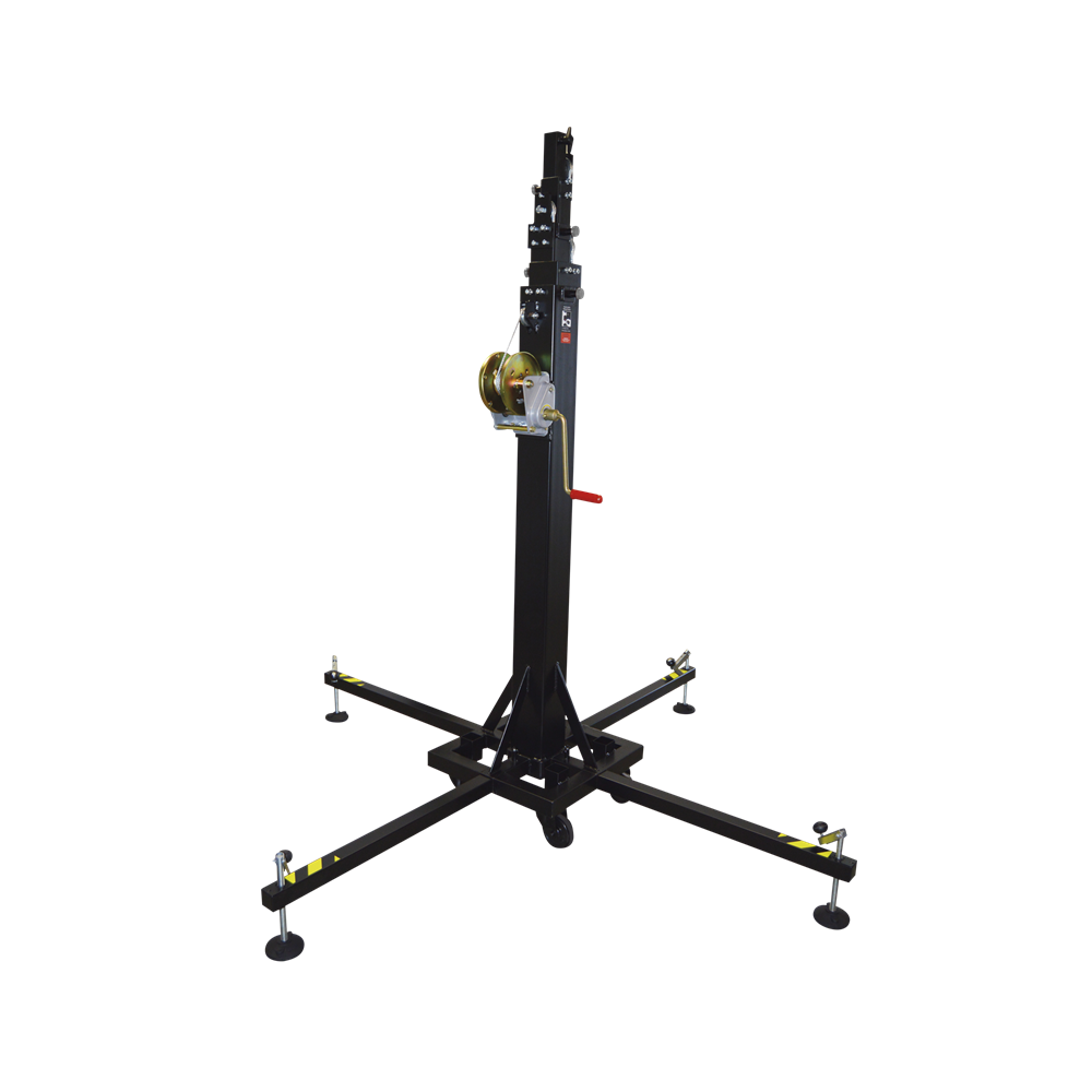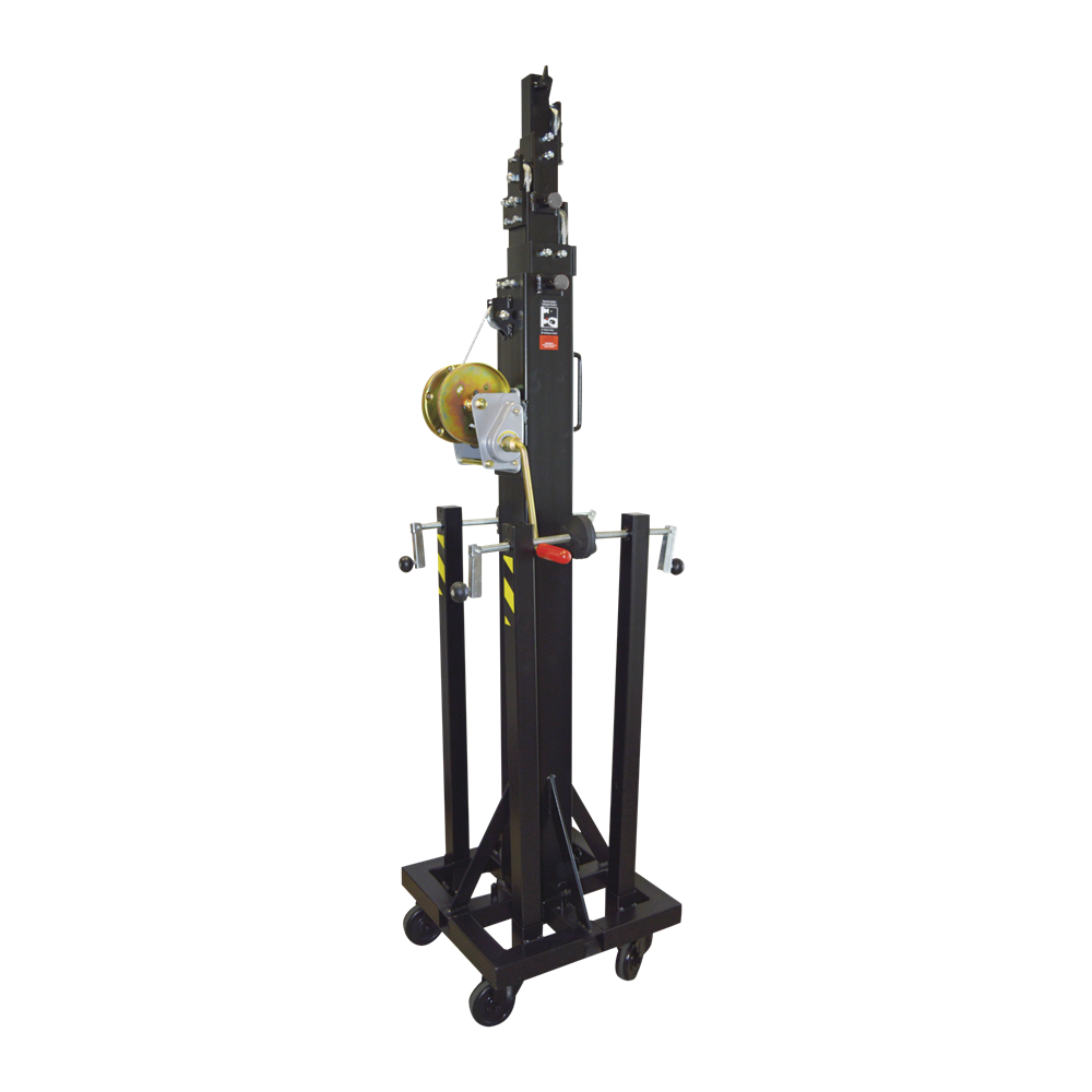 Dette wind-up stativ er med aftagelige ben er perfekt til at hæve lydsystemer, belysning og traverser. Den kan løfte belastninger på op til 300 kg op til en højde på 6,1 meter. Sikkerhedsfunktioner inkluderer en forstærket base, automatisk benlåsesystem, sikkerhedsklemmer og en cirkulær vaterpas for at hjælpe dig med at niveauregulere tårnet for optimal stabilitet.