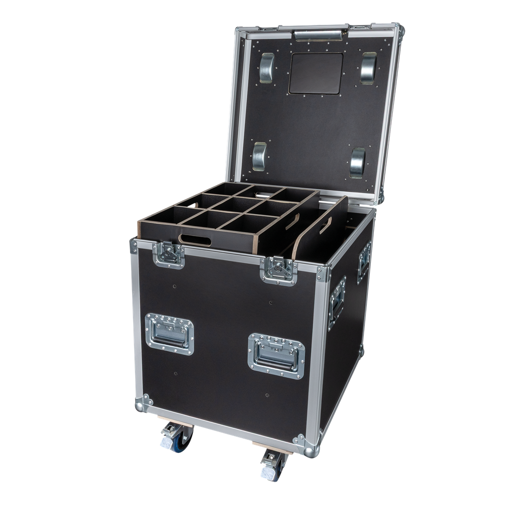 Crafted from premium 9 mm plywood and fitted with reliable Penn Elcom hardware, this case is built to withstand the rigours of touring and frequent use. Four 100 mm castors with brakes ensure smooth mobility and secure placement, while two spring-loaded handles on each side provide a comfortable grip for lifting and handling. Four stacking dishes allow multiple cases to be safely stacked without the risk of shifting or rolling.