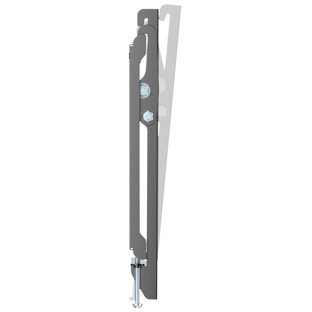 With a tilt range of 0° to -8°, it helps reduce glare and improve viewing comfort. The ultra-slim profile (just 22 mm) keeps your TV close to the wall for a sleek, modern look. Open architecture allows easy access to cables, while the integrated bubble level ensures precise alignment during installation. Security screws keep the TV firmly in place.