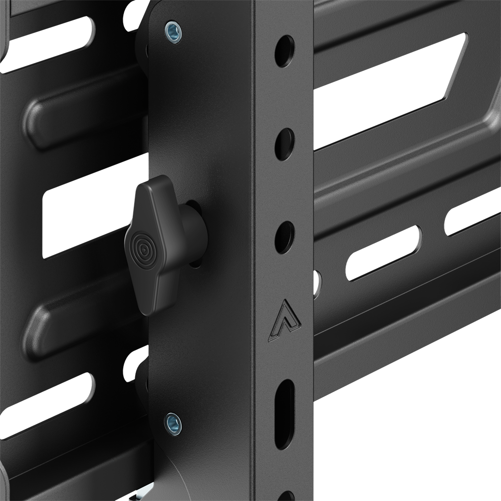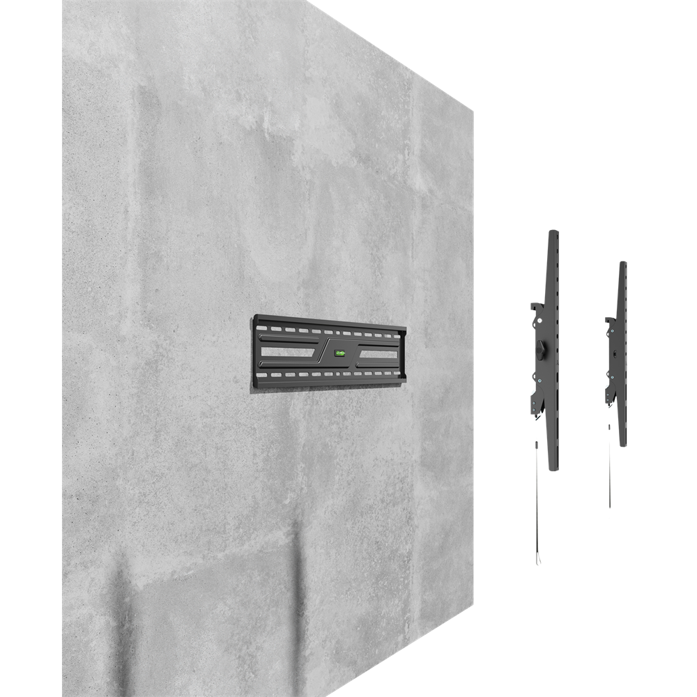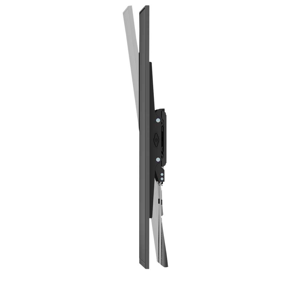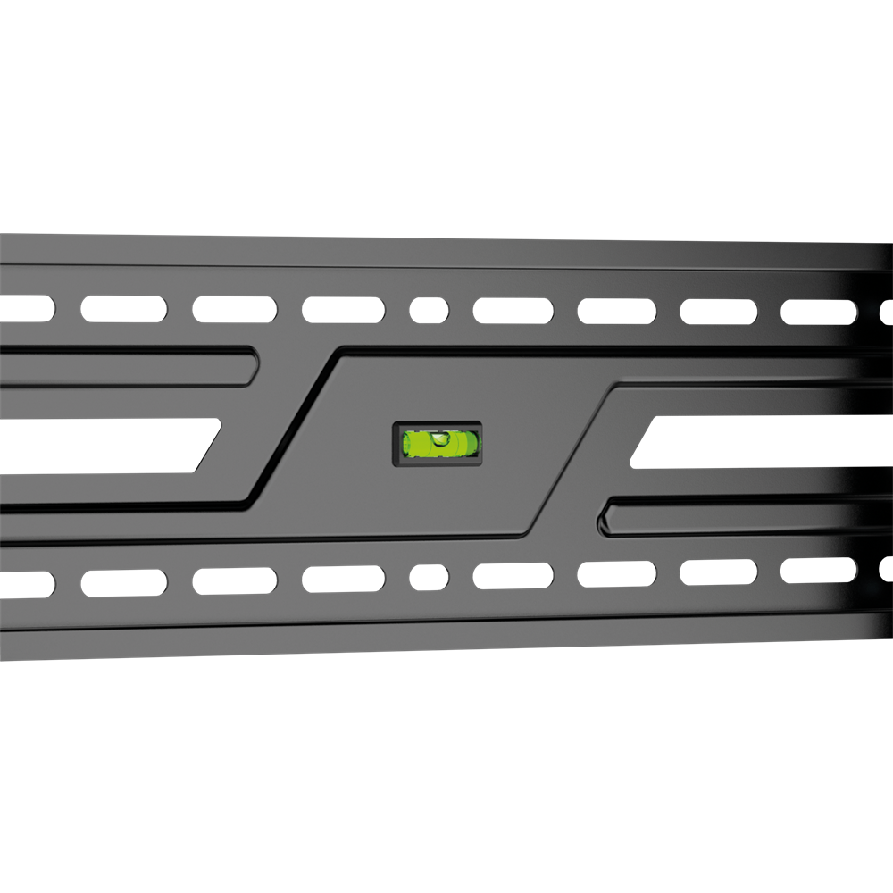 Den har en vippevinkel på +5° til -10°, som hjælper med at reducere genskin og forbedre seelskabet. Det 50 mm lavprofildesign holder dit tv tæt på væggen for et rent, moderne look. Let at betjene skruer tillader hurtig vippejustering, mens den automatiske fjederlås sikrer en sikker og ubesværet installation. Et indbygget vaterpas hjælper med at opnå perfekt justering.