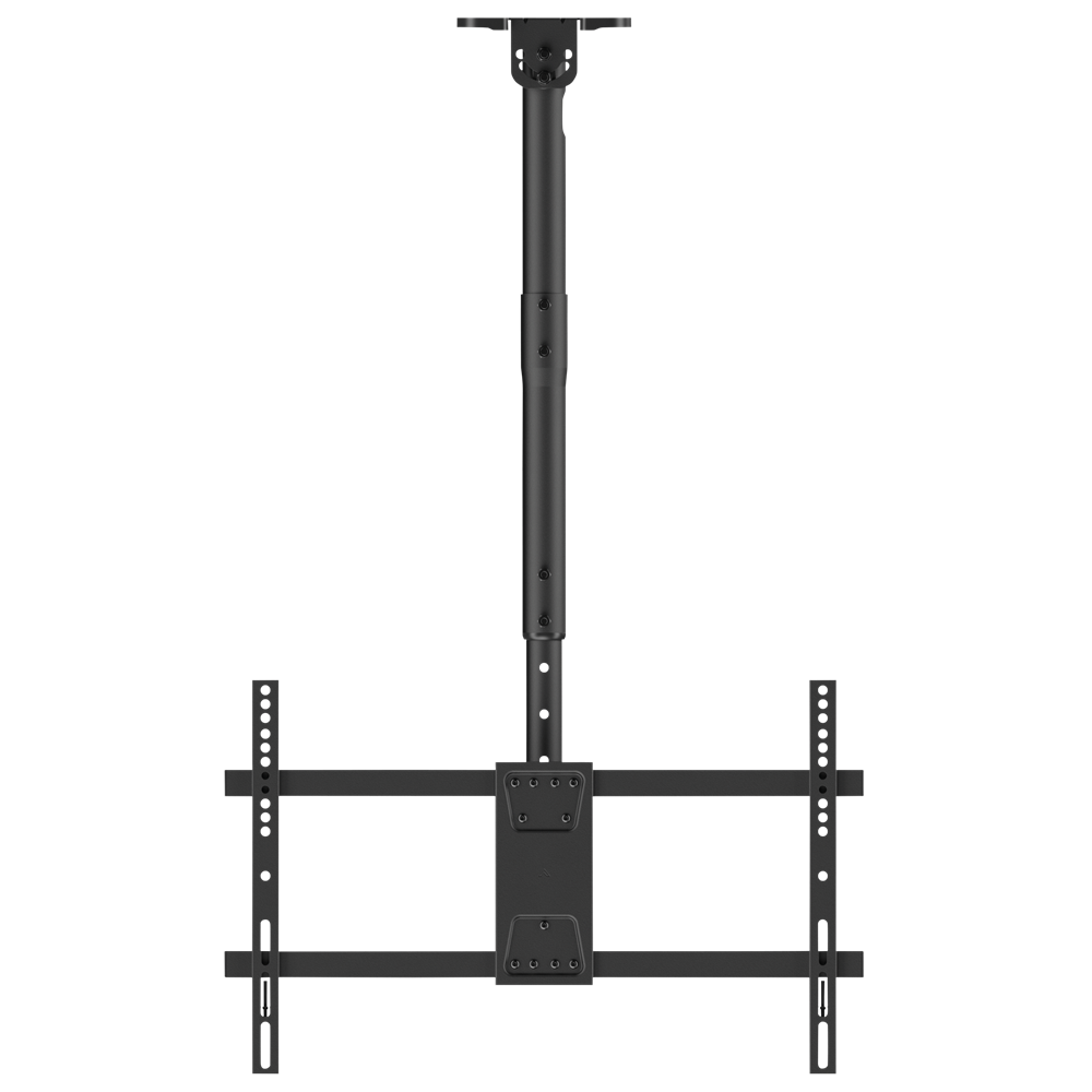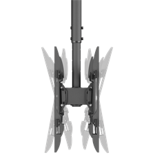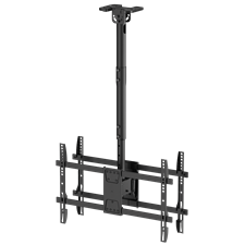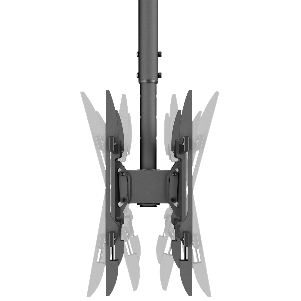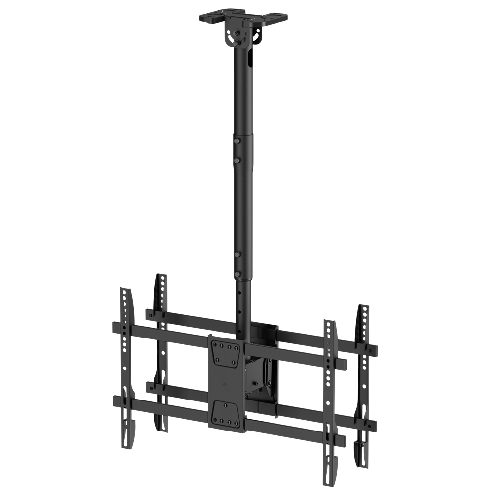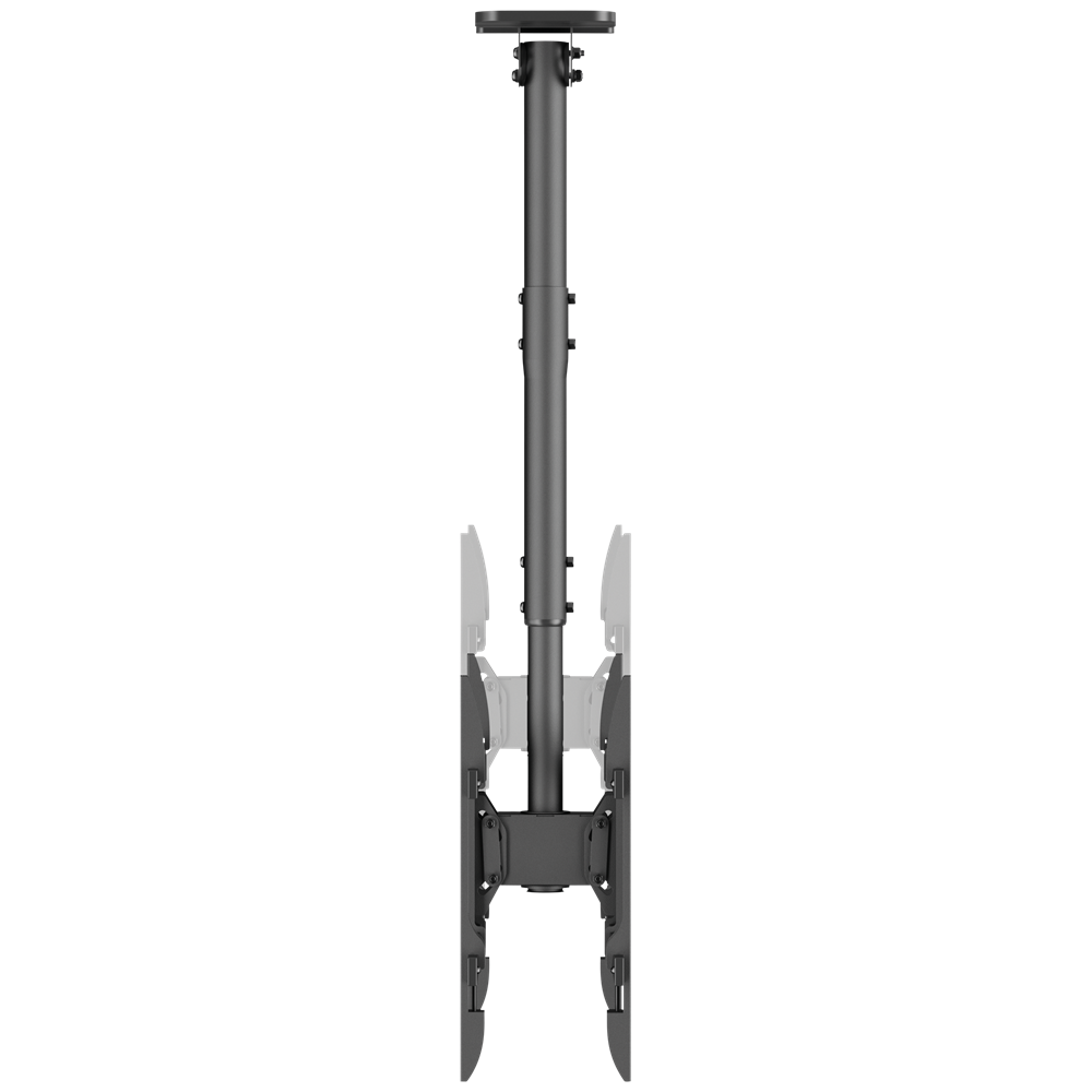 Dens ryg-til-ryg konfiguration sikrer optimal synlighed fra flere vinkler, imens den justerbare loftplade kan rumme både flade og skrå lofter. Det har 360° rotation, teleskopisk højdejustering (485 til 925 mm), og en frit tiltende design (+5° to -20°) for reduceret genskin og perfekt visningsjustering. Med en vægtkapacitet på 50 kg pr. skærm og universel VESA kompatibilitet op til 600x400, er installationen ligetil og sikker.