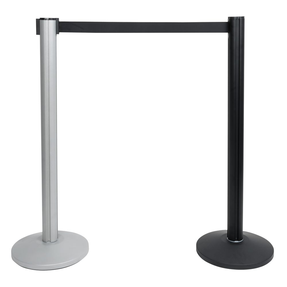 Nem at bruge PRO publikumsbarriere med en 1.06 m pin og en 10 kg base. Udstyret med et justerbart bælte (maksimal længde 2 m), som kan fastgøres til den næste publikumsbarriere gennem en nem at bruge skydemekanisme.