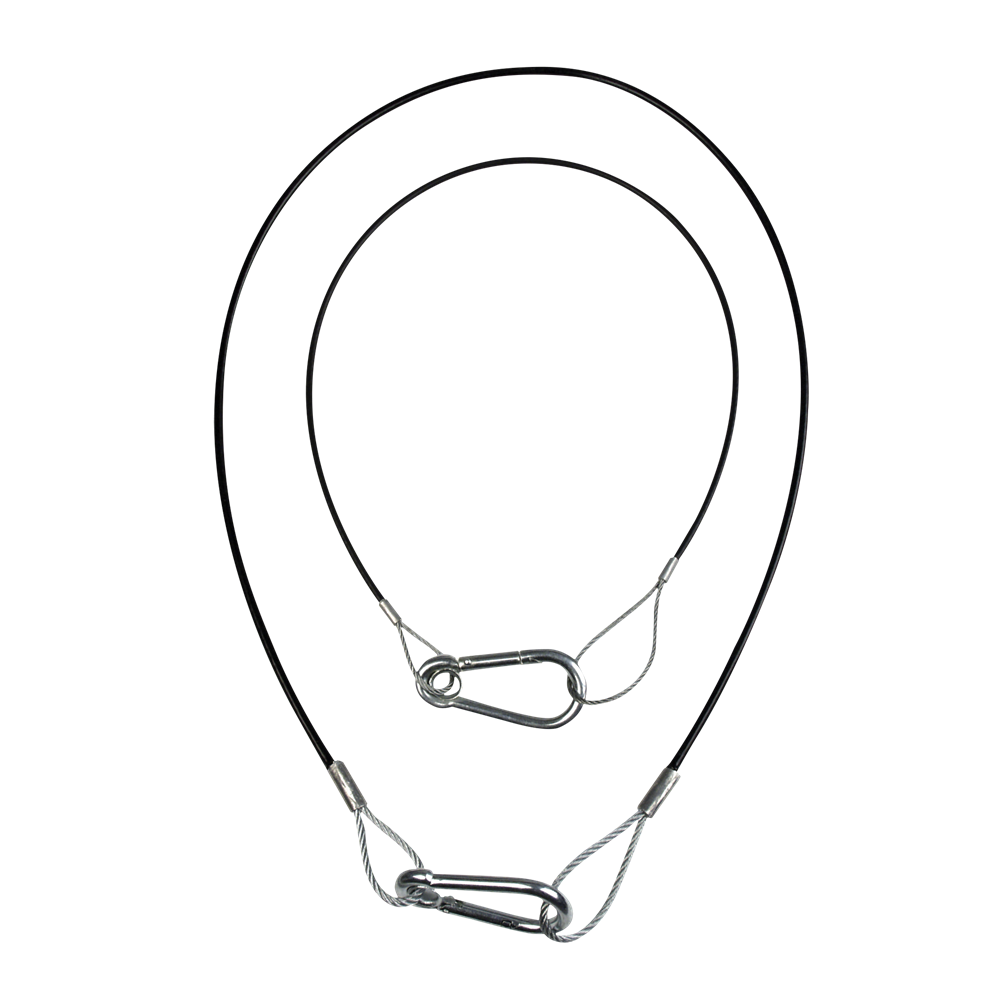 Bemærk at sikkerhedskabler er beregnet til at sikre dit udstyr og ikke til at blive brugt til løft/ophængning af udstyr. Du kan bruge vores omfattende sortiment af rigging til at vælge det rigtige produkt til dette.