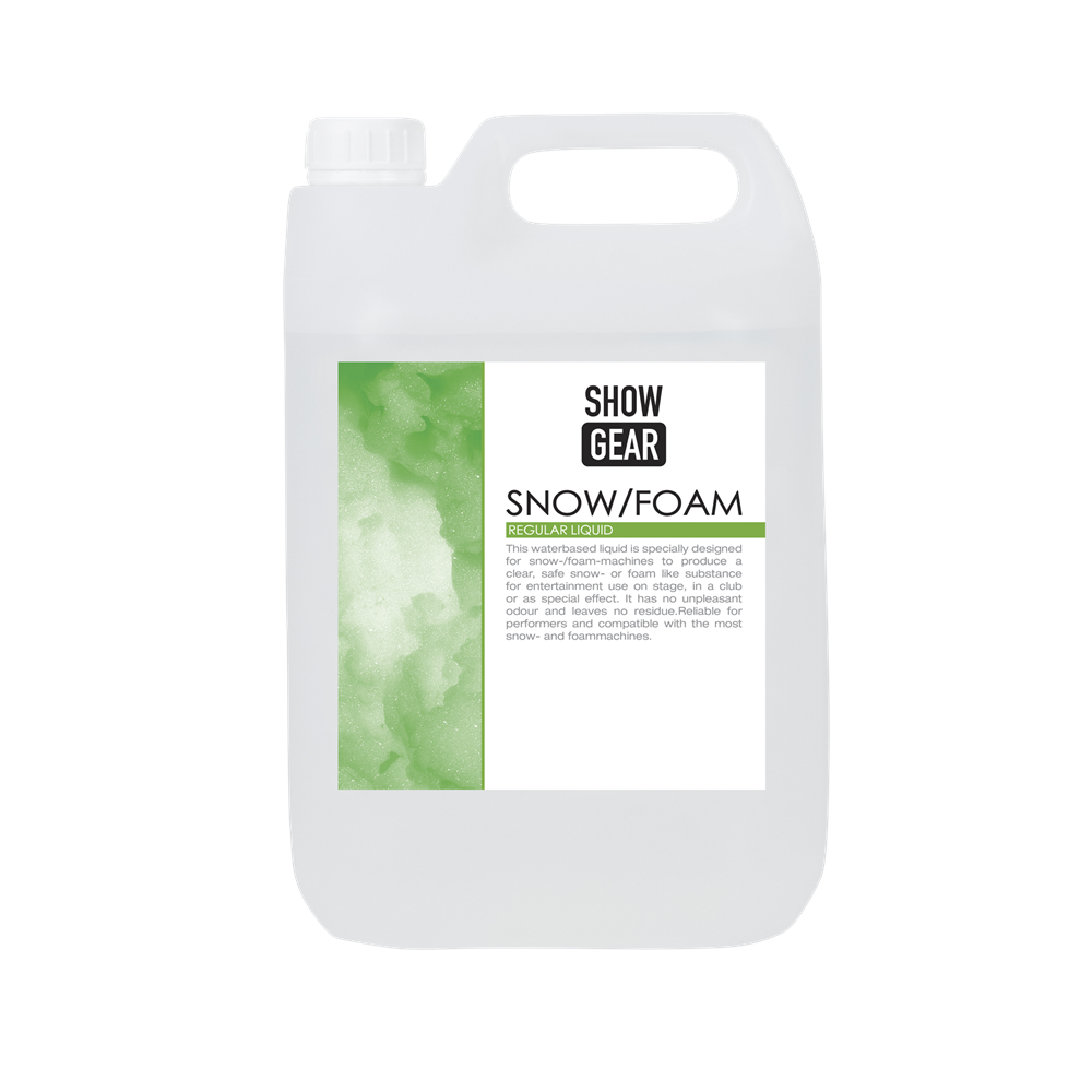 Showgear Snow/Foam væske 5 liter Ready er en vandbaseret væske, specielt designet til sne- og skummaskiner for at producere en klar, sikker sne- eller skumsubstans. Den har ingen ubehagelig lugt og efterlader ingen rester. Snow/Foam væske 5 liter Ready er pålidelig for udøvere og kompatibel med de fleste sne- og skummaskiner.