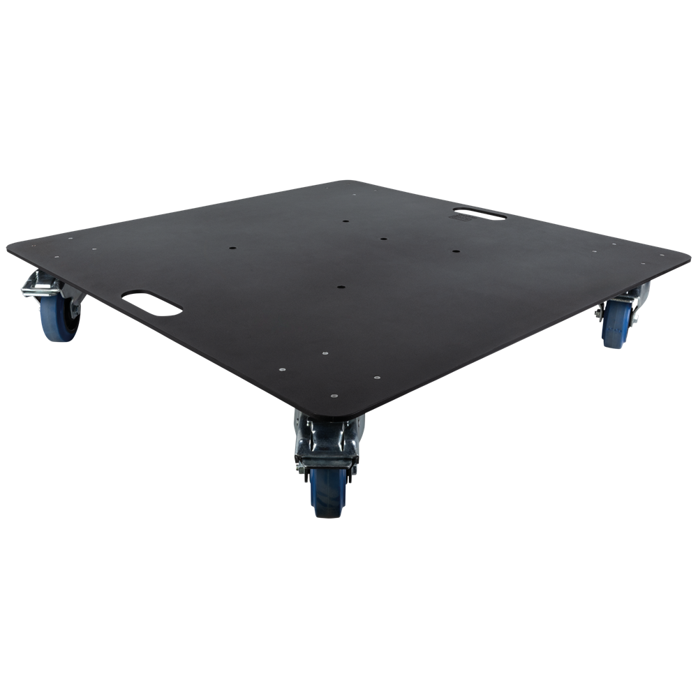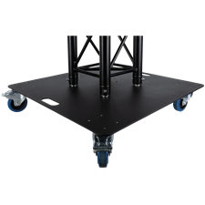 The Universal Truss Base Plate 750 with wheels is designed for Pro-30 Step, Square and Triangle trusses. Made of 6 mm-thick steel for robust performance, laser engravings on the underside of the plate and countersunk M10 holes help to simplify the truss setup. The plate is ideal for making lighting towers for quick changeovers, while the Penn Elcom wheels make the plate easy to move.