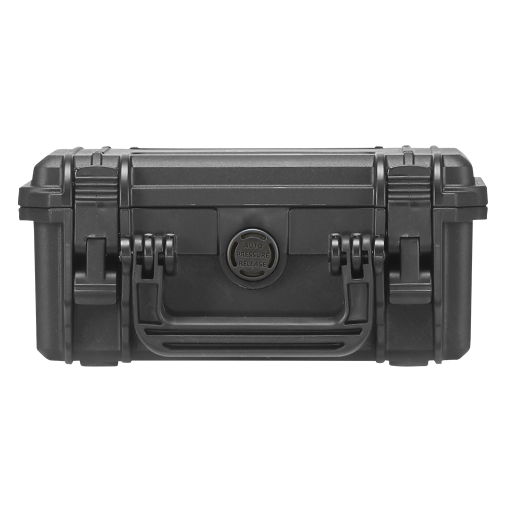 This tough case is ideal for protecting valuable equipment during storage and transportation. The included pluck foam allows customisation for a perfect fit, while the robust, double-throw latches offer optimal security and are easy to open. With an IP67 rating, the case offers effective protection against both dust and water, while the automatic pressure release valve equalises the internal air pressure.