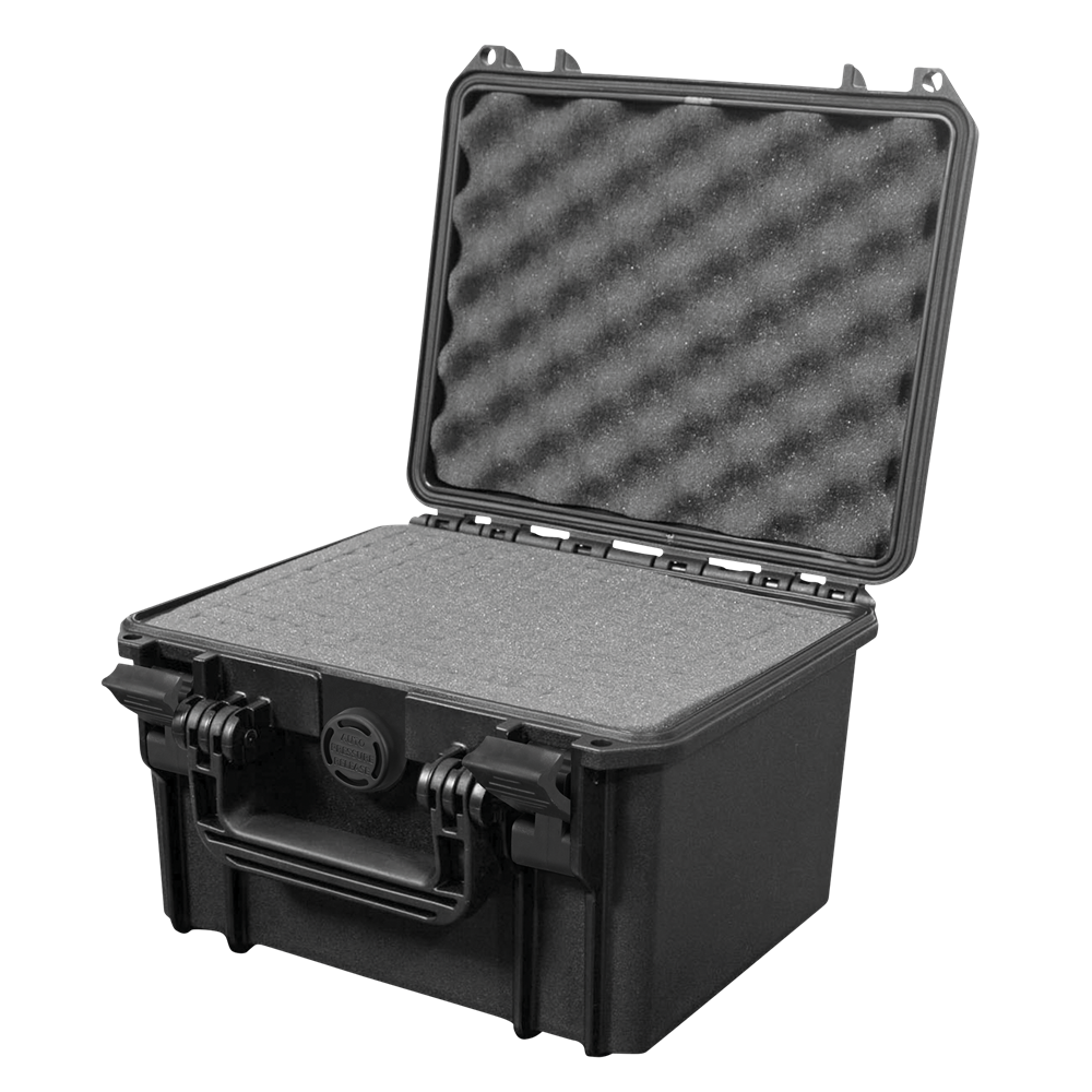 This tough case is ideal for protecting valuable equipment during storage and transportation. The included pluck foam allows customisation for a perfect fit, while the robust, double-throw latches offer optimal security and are easy to open. With an IP67 rating, the case offers effective protection against both dust and water, while the automatic pressure release valve equalises the internal air pressure.