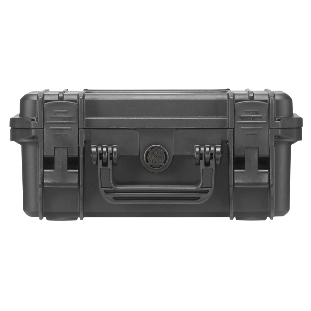 This tough case is ideal for protecting valuable equipment during storage and transportation. The included pluck foam allows customisation for a perfect fit, while the robust, double-throw latches offer optimal security and are easy to open. With an IP67 rating, the case offers effective protection against both dust and water, while the automatic pressure release valve equalises the internal air pressure.