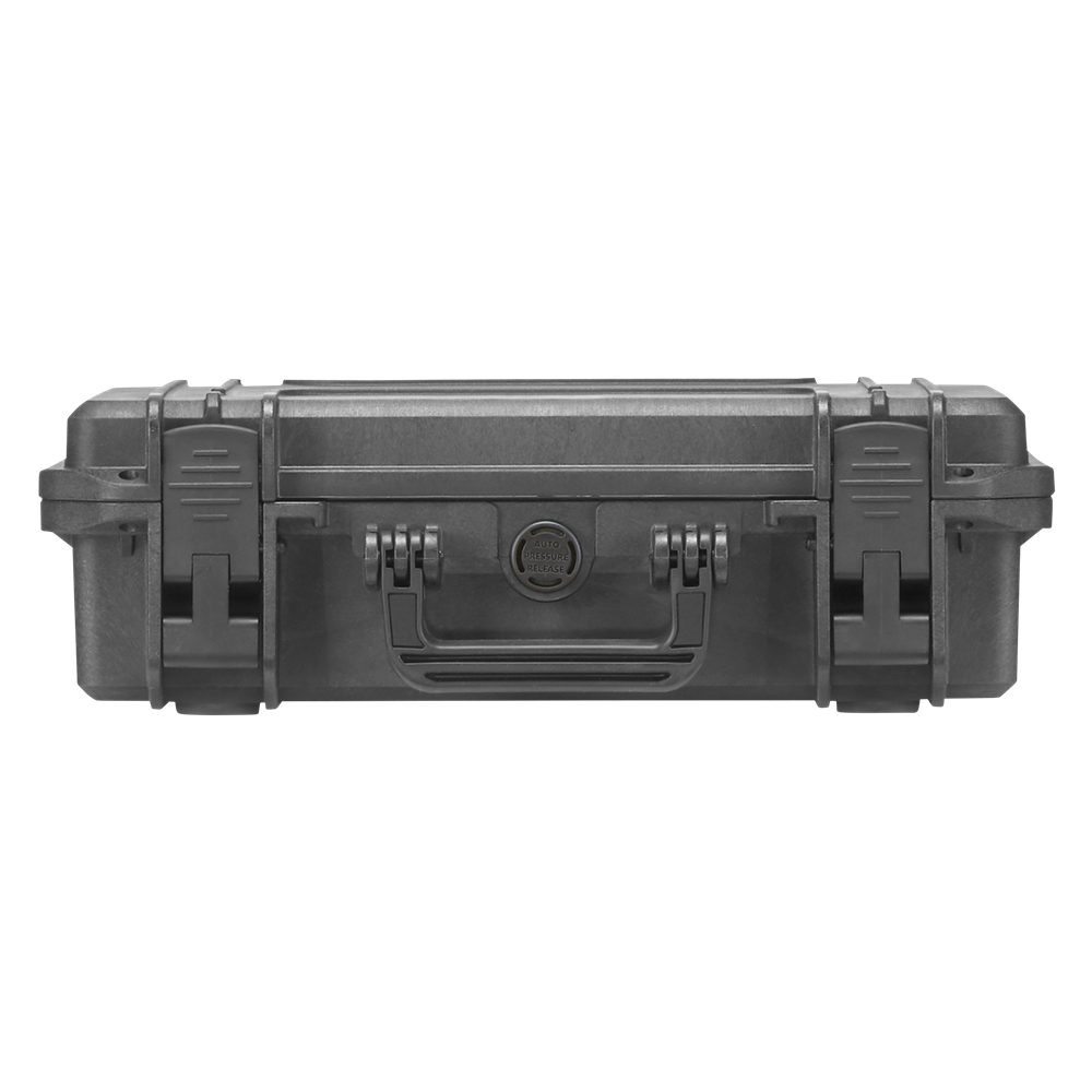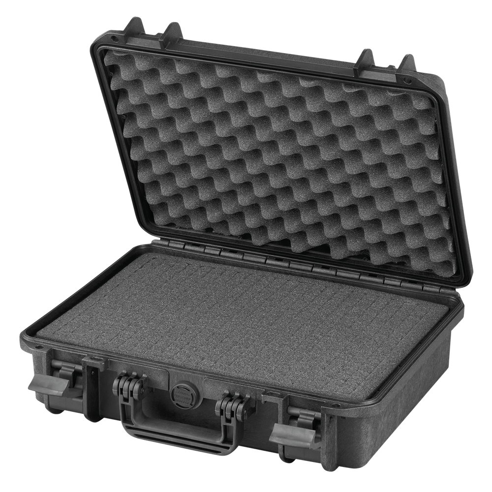 This tough case is ideal for protecting valuable equipment during storage and transportation. The included pluck foam allows customisation for a perfect fit, while the robust, double-throw latches offer optimal security and are easy to open. With an IP67 rating, the case offers effective protection against both dust and water, while the automatic pressure release valve equalises the internal air pressure.