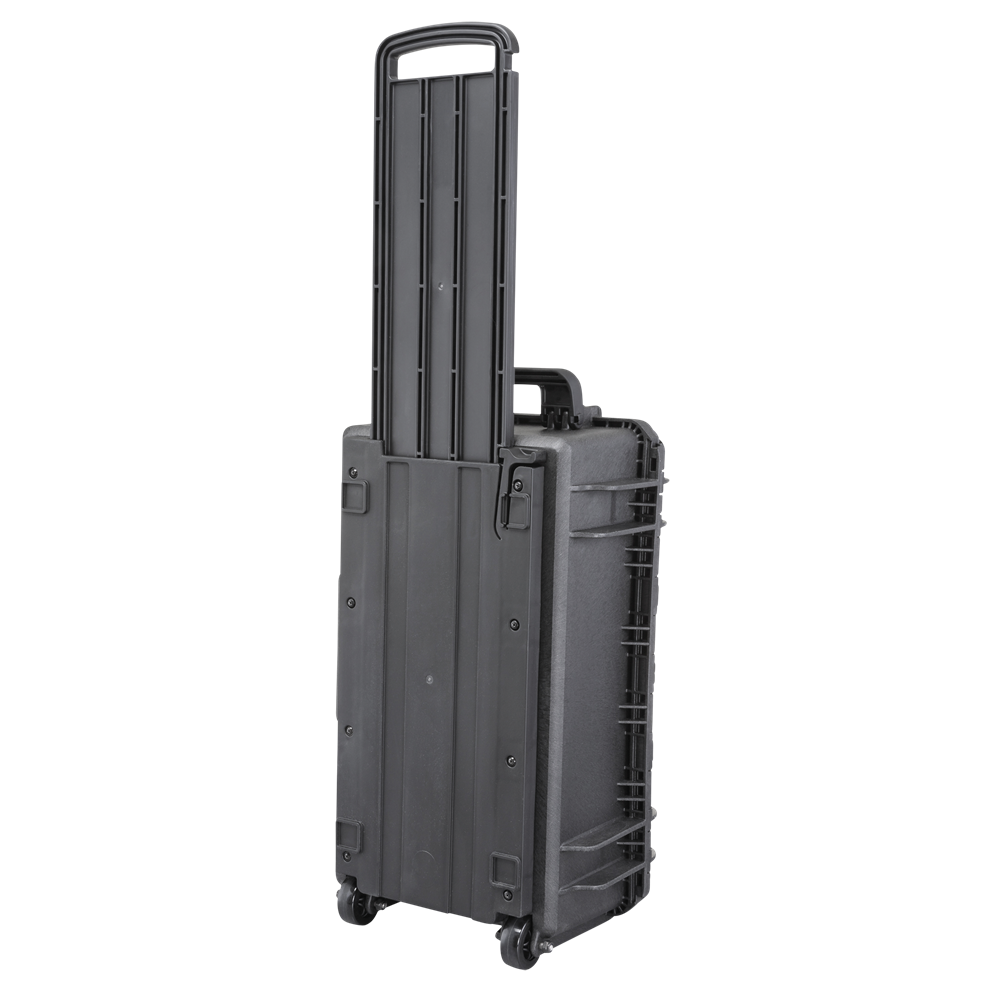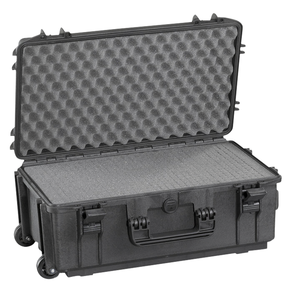 This tough trolley case is ideal for protecting valuable equipment during storage and transportation. The included pluck foam allows customisation for a perfect fit, while the robust, double-throw latches offer optimal security and are easy to open. With an IP67 rating, the case offers effective protection against both dust and water, while the automatic pressure release valve equalises the internal air pressure. The handle and wheels make the trolley case easy to transport.