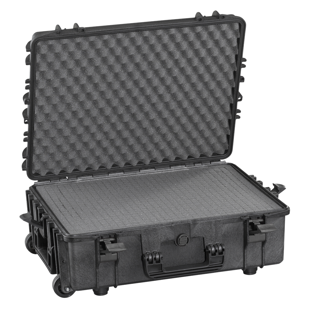 This tough trolley case is ideal for protecting valuable equipment during storage and transportation. The included pluck foam allows customisation for a perfect fit, while the robust, double-throw latches offer optimal security and are easy to open. With an IP67 rating, the case offers effective protection against both dust and water, while the automatic pressure release valve equalises the internal air pressure. The handle and wheels make the trolley case easy to transport.
