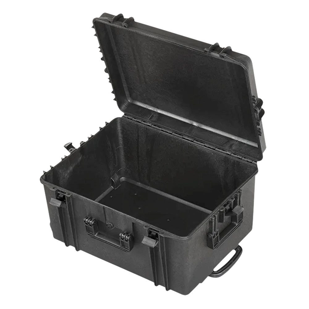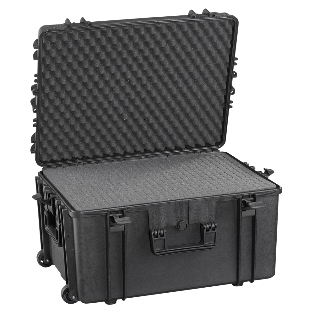 This tough trolley case is ideal for protecting valuable equipment during storage and transportation. The included pluck foam allows customisation for a perfect fit, while the robust, double-throw latches offer optimal security and are easy to open. With an IP67 rating, the case offers effective protection against both dust and water, while the automatic pressure release valve equalises the internal air pressure. The handle and wheels make the trolley case easy to transport.