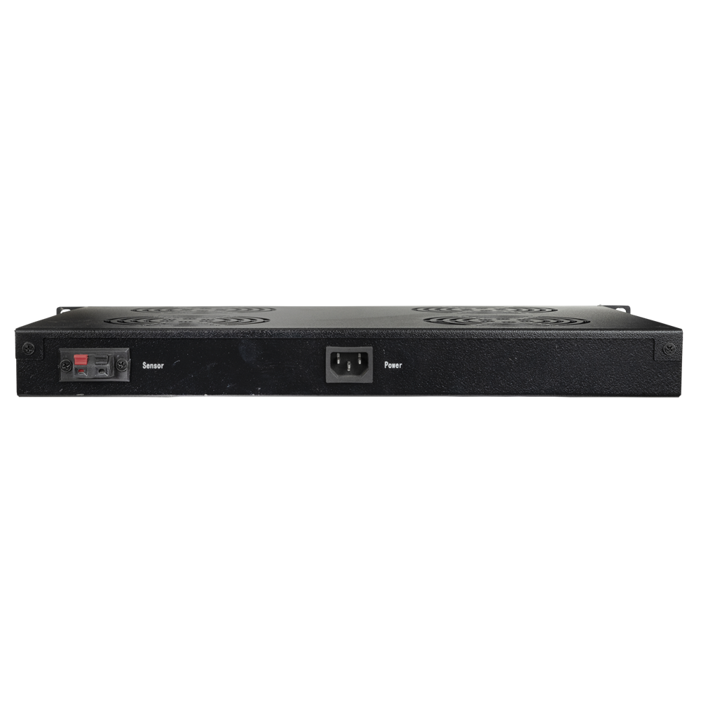 Showgear 2-Way 1U Fanenheden forhindrer 19" rack enheder i at overophede. Den har et internt temperaturstyringssystem, så den tænder og slukker automatisk afhængigt af den indstillede temperatur. Da den er udstyret med 4 blæsere, vil den lede luftstrømmen meget godt.