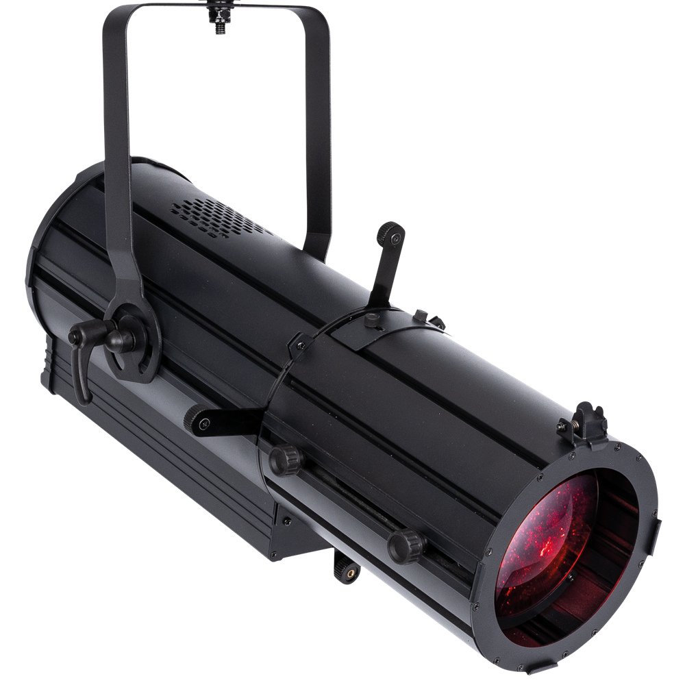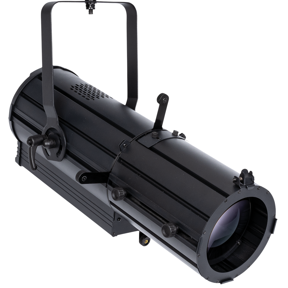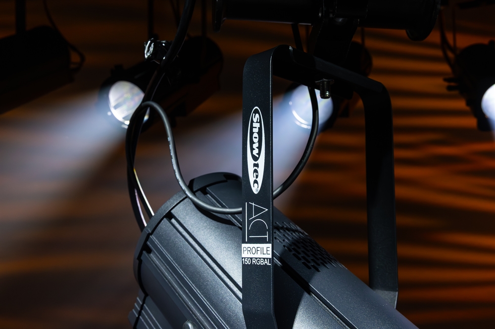 The Showtec ACT Profile 150 RGBAL is a compact 150-watt RGBAL LED profile with high CRI and silent operation, suitable for theatrical applications, schools, museums, and exhibitions. It projects a bright, hard-edged beam of light within a 23° - 46° manually adjustable zoom range. The ACT Profile 150 RGBAL can be controlled via DMX, RDM, and it is equipped with one knob for manual colour and dimmer control. It comes with 5 design gobos and a four-blade shutter system, allowing you to add the proper intensity of light where it's needed.