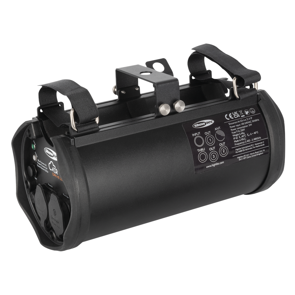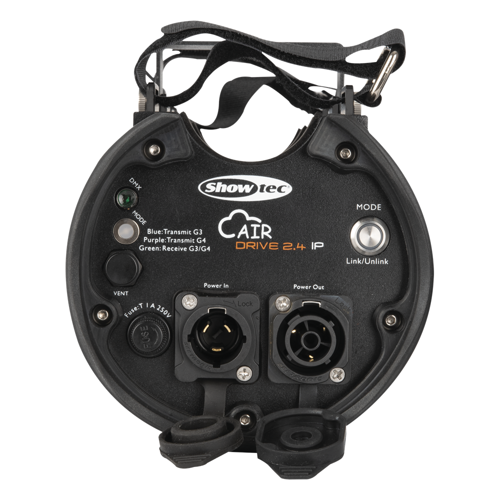 Showtec AirDrive 2.4 IP er en kompakt DMX512-transceiver, der kan omstilles mellem sender- og modtagerfunktion. Den er designet til truss-montering og midlertidig udendørs brug og giver en hurtig og nem måde at etablere en trådløs DMX512-forbindelse på. I sendertilstand kan den sende i G3- eller G4-tilstand; i modtagertilstand understøtter den G3- og G4S-tilstand. En fungerende opsætning kræver to eller flere enheder: én konfigureret som sender og én eller flere konfigureret som modtagere og parret med senderen. Der er ingen grænse for antallet af modtagere, der kan parres med senderen.