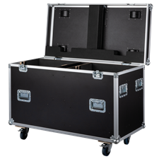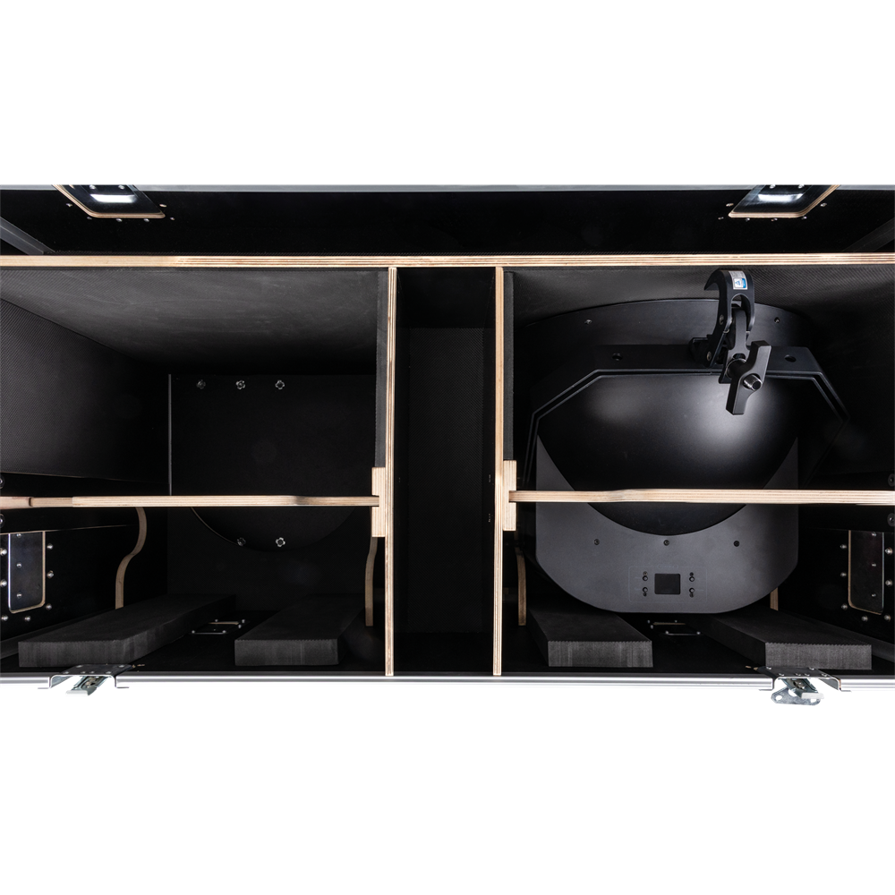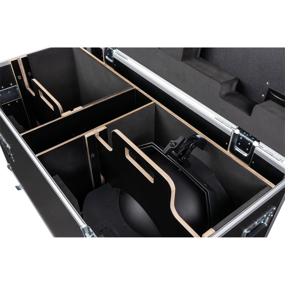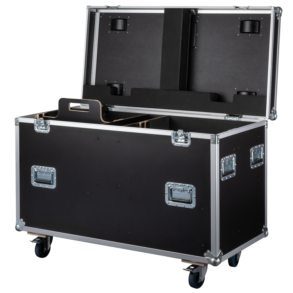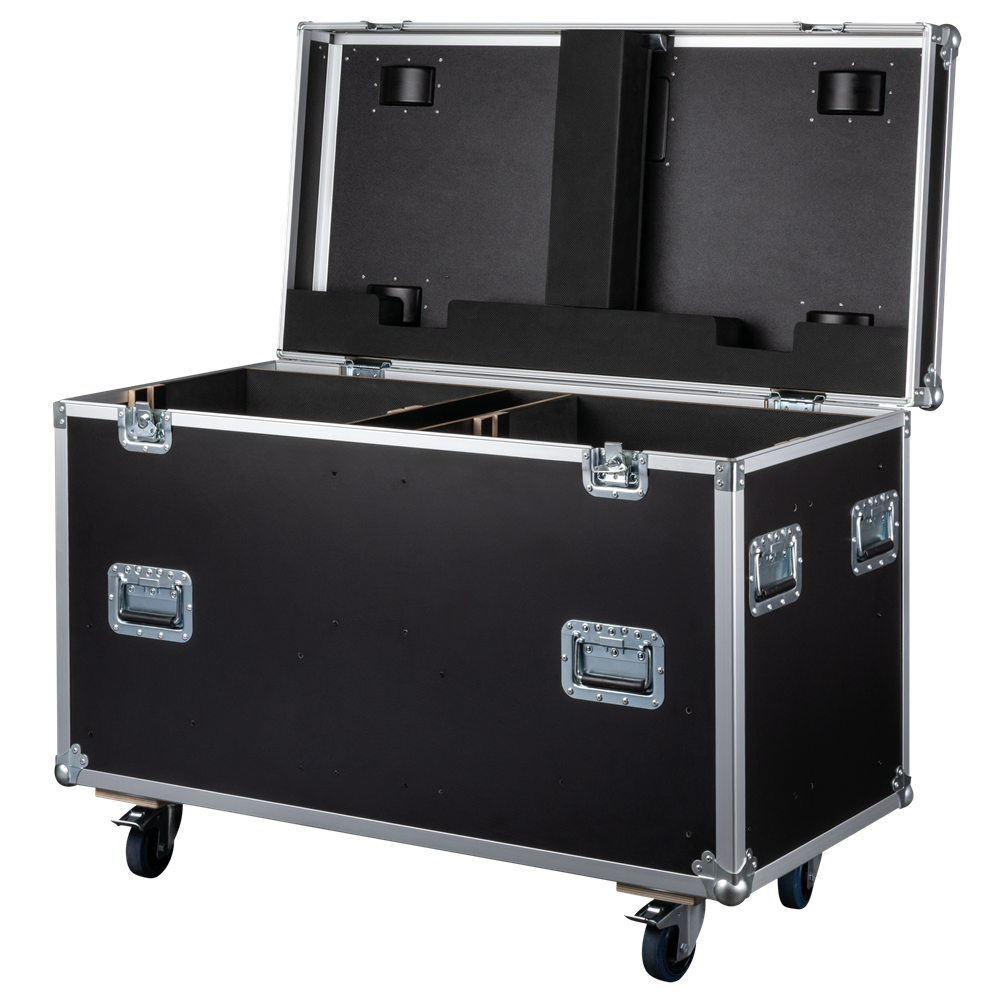 The Showtec Case for 2x Showtec Goliath is a dedicated flight case for two Goliath retro light effects. The interior with pre-formed foam keeps two fixtures safe and secure during transport and storage. The case is constructed from durable 9 mm plywood with recessed handles in strategic locations for easy handling and Penn Elcom butterfly latches to keep the lid closed. It is fitted with 4 swivel wheels with brakes for easy manoeuvrability.
