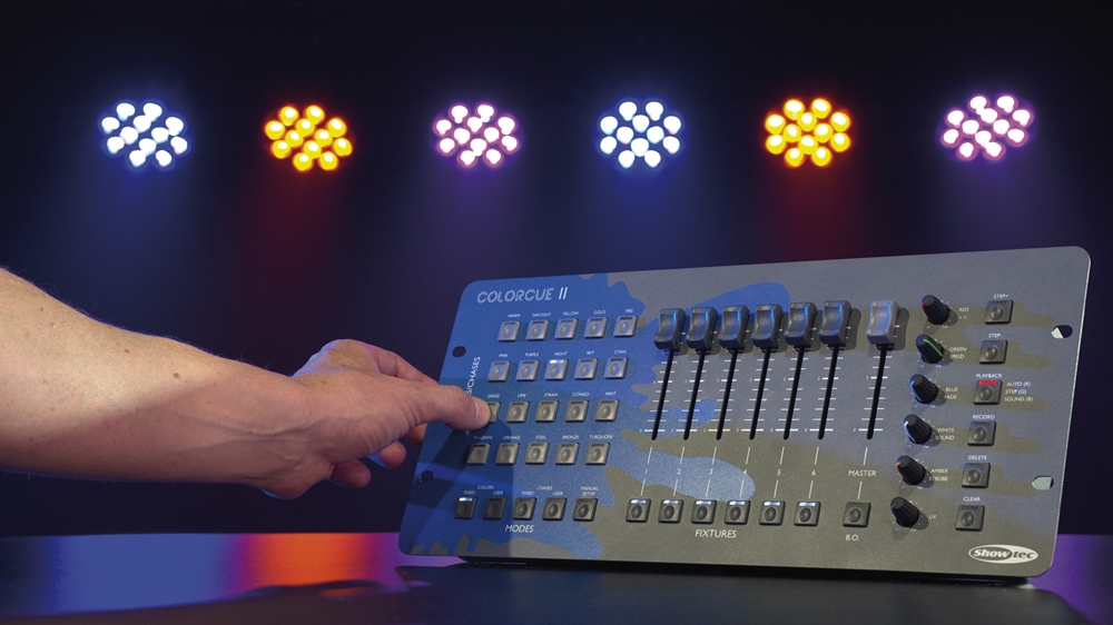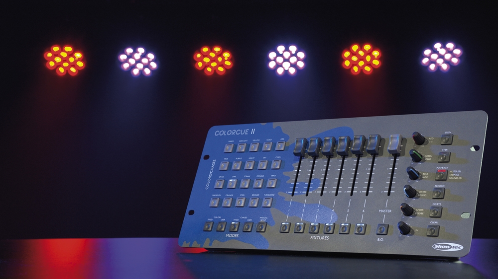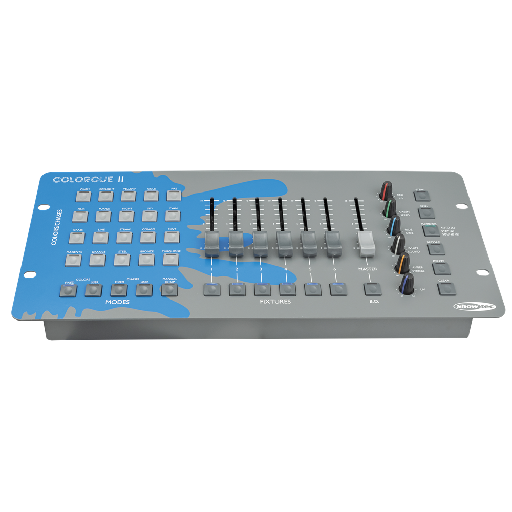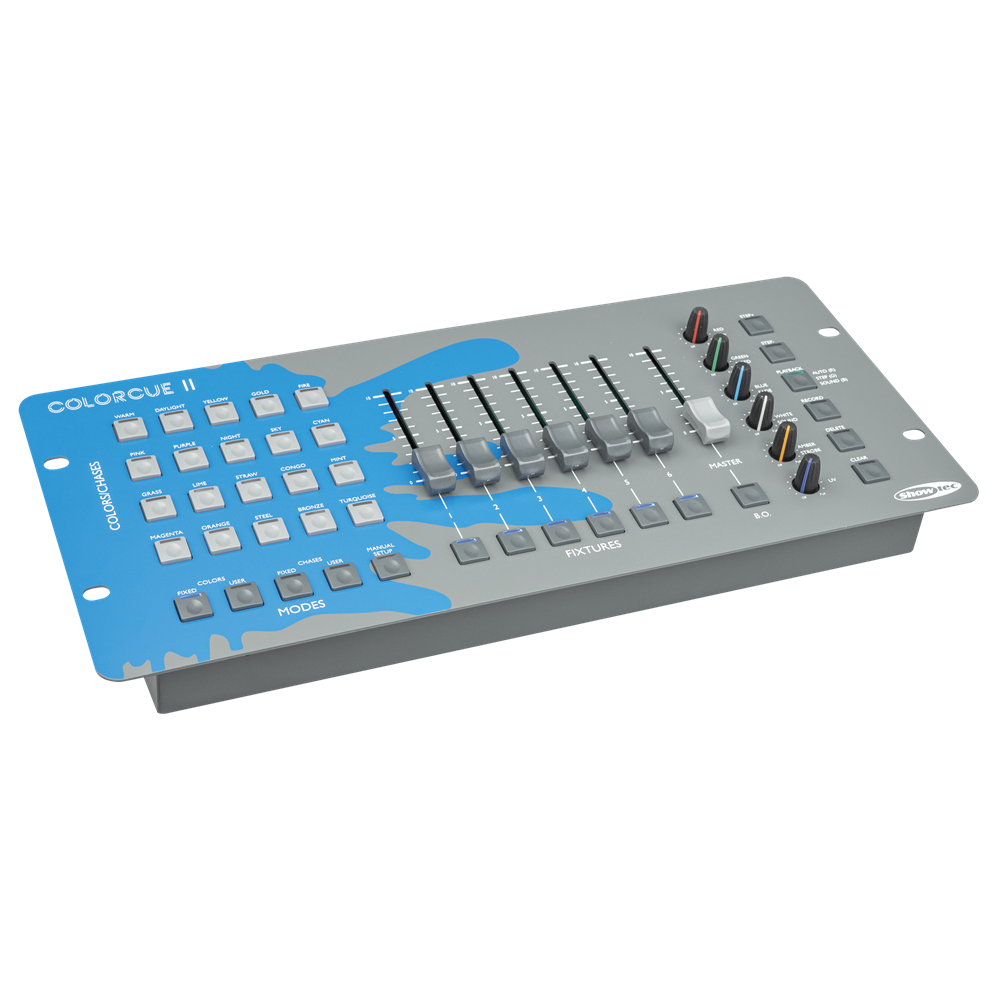 Showtec ColorCue 2 er en intelligent 6-fader LED DMX controller med 36 kanaler for nemt at styre lysudbyttet fra LED armaturer med op til 6 farver (RGBWA-UV), egnet til ethvert sted. Dens 6 potentiometre gør det muligt for dig hurtigt at justere lysudbyttet for hver fader til din ønskede farve, fra 3-farve RGB til 6-farve RGBWA-UV. ColorCue 2 gør det muligt for dig at skabe dine egne 20 forudindstillede farver og vælge mellem 20 forudprogrammerede farver. Du kan oprette op til 20 programmer (chaser) eller benytte de 20 forudprogrammerede chaser med hver op til 99 trin til skift af farver og effekter i en sløjfe. Chaser kan styres i enten manuel, automatisk drift og lydkontrolleret tilstand.