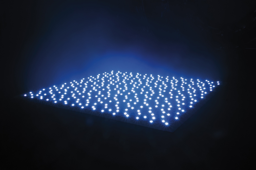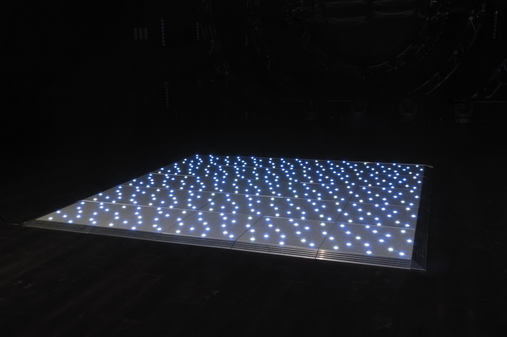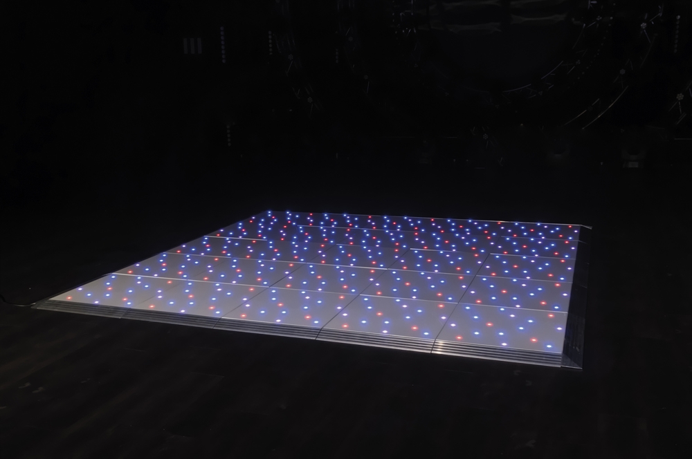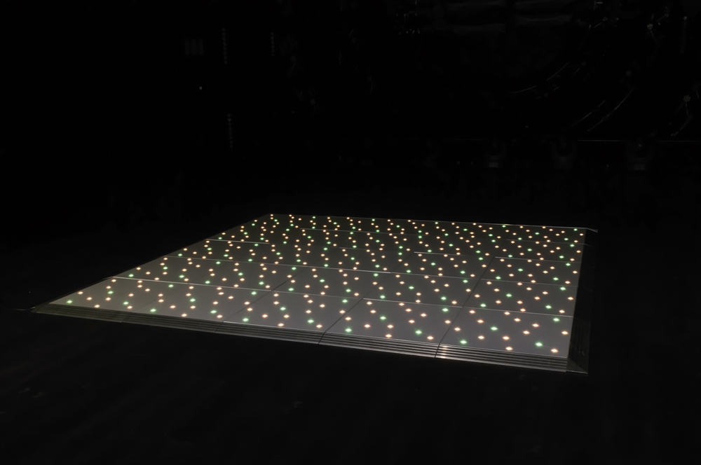De 16 lyse RGB-LED’er er opdelt i fire grupper og skaber en blændende effekt. Lysstyrken på LED’erne, hastighed, farver og 32 programmer kan justeres via DMX gennem den valgfri Dance Floor Sparkle DMX Box eller via den valgfri, brugervenlige RF-fjernbetjening.