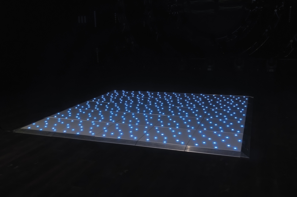 Showtec Dancefloor Sparkle RGB er en stilfuld, brugervenlig dansegulvflise, som er ideel til bryllupper, firmaarrangementer, dansefester med mere. Dansegulvet har en sikker lavspændings DC-forbindelse, hvilket gør det meget nemt at tilslutte. Datasignaler sendes via RF, hvilket minimerer antallet af kabelforbindelser. Den 6 mm tykke akryl topdæksel er ekstremt robust, vedligeholdelsesfri og nem at rengøre.