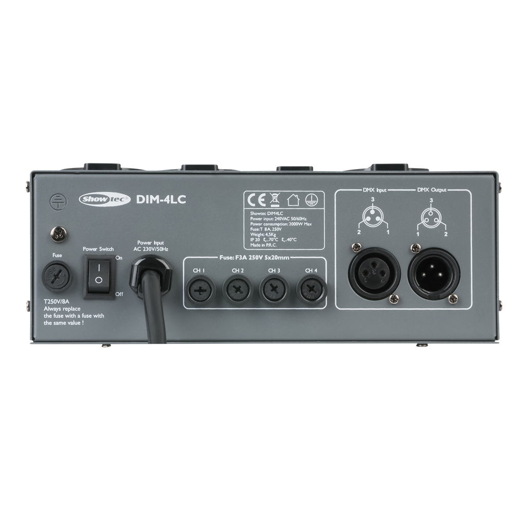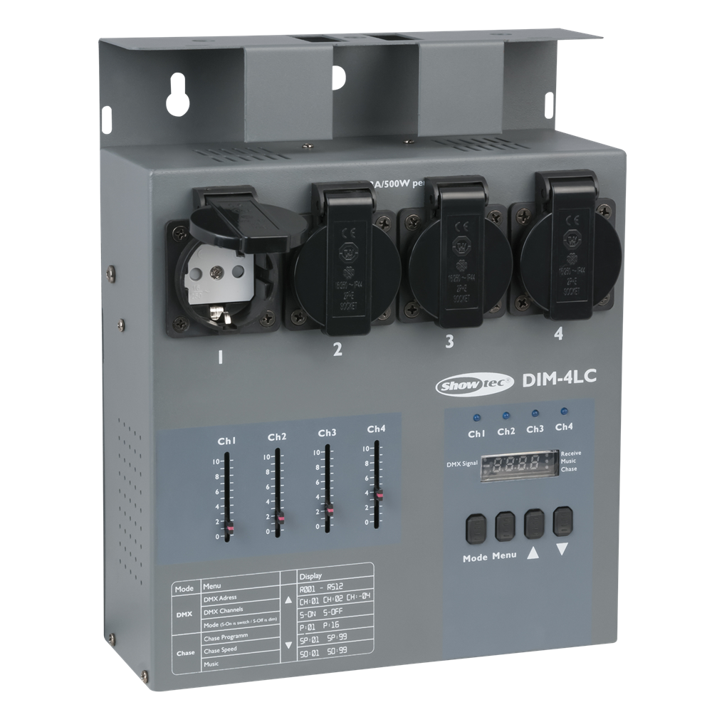 DIM-4 kan fuldt ud styres af DMX, men har også en indbygget chaser samt en lydkontrolfunktion. For nem brug på ethvert sted har DIM4LC 4 lokale kontrolfadere, hvilket gør den til en kraftfuld og kompakt dæmpningspakke til talrige anvendelser.