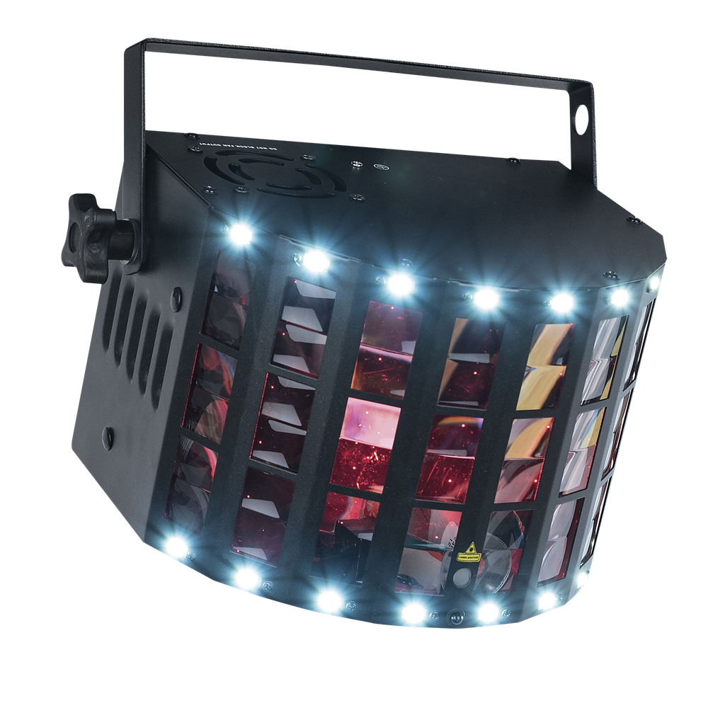 Showtec Energetic er en legendarisk LED derby-effekt kombineret med en mønsterlaser og SMD-strobe i én enhed. Denne effekt skaber hundredvis af mega skarpe RGBW-stråler, enestående strobelysforløb og kraftfulde røde og grønne laserstråler, som fylder hele dansegulvet. Betjeningen er nem med DMX, forprogrammerede eller lydaktiverede programmer.
