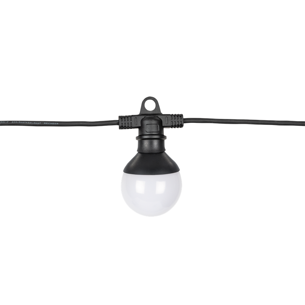 Showtec Festoon Q4 String IP65 er klassificeret som IP65 til udendørs brug i fugtige/støvede miljøer. Den har en længde på 15 m med i alt 20 pixels. Hver pixel kan styres individuelt med den dedikerede Festoon Q4 controller. I alt kan tre festoon-strenge tilsluttes i serie til controlleren. Dette kan udvides til i alt 6 strenge pr. controller ved brug af den dedikerede Festoon Q4 Booster.