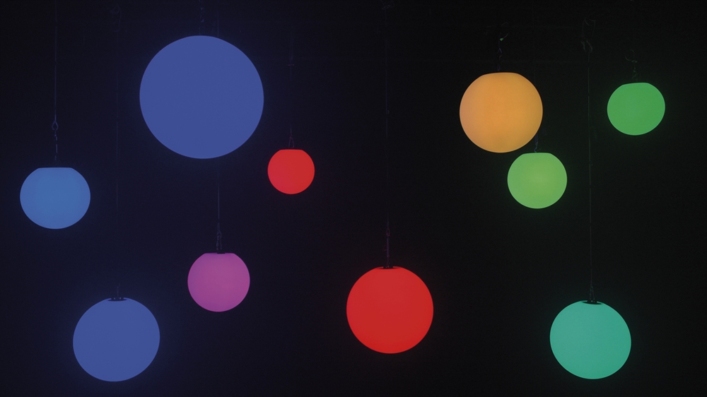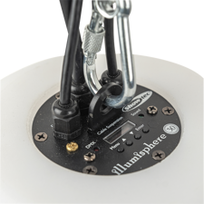 Illumispheres er udstyret med lyse RGBW LEDs, der sikrer kraftfulde og rige farver. Opsætning sker nemt via OLED-skærmen. Til sikker montering er der udstyret et ophængsøje.