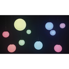 Illumisphererne er udstyret med lyse RGBW LED'er, der sikrer kraftfulde og rige farver. Opsætning foretages nemt via OLED-skærmen. Til sikker montering er et ophængningsøje monteret.