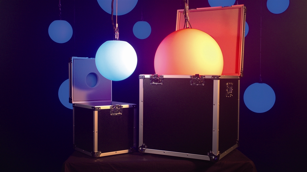 Showtec Illumisphere, tilgængelig som 30 cm (41122) og 50 cm version (41123), er en meget lys RGBW LED-sfære. Den kan fungere selvstændigt ved brug af et af de tilgængelige automatikprogrammer. Du kan også skabe din egen personlige atmosfære ved at indstille den rette farve via DMX (forbindelse via 3P XLR). Hver Illumisphere er udstyret med et dedikeret ophængningsøje, hvorigennem enheden kan monteres og sikres i en statisk position. Et certificeret sikkerhedskabel med en SWL på 5 kg er alt, hvad du behøver. Du kan tilføje Illumisphererne som statiske blikfang i ethvert Showtec Illumilift setup, fordi begge systemer har samme DMX LED-personlighed.