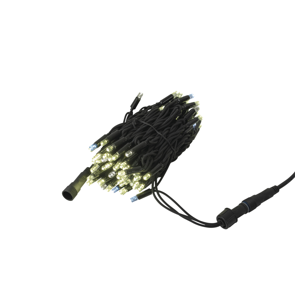 Showtec LED Rubber FX Light WW er en overkommelig og dekorativ effekt-strengelys, der er meget velegnet til sæsonbetonet dekoration såvel som belysningseffekter i haver, træer og på terrasser. Takket være det robuste gummikabel og IP65-klassificeringen, er strengelysene velegnet til midlertidig udendørs brug. LED Rubber FX Light WW fås i to længder: 10 m og 20 m. Begge versioner har 80% statiske varmhvide LEDs og 20% tilfældigt blinkende koldhvide strobe LEDs. Op til 200 m af strengene kan kæde-forbindes til en strømkabel. En dedikeret strømkabel medfølger.