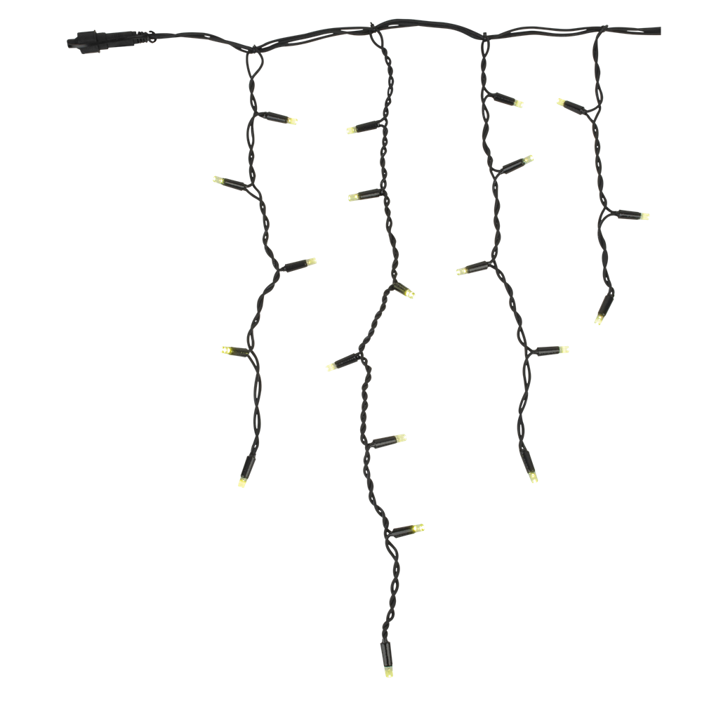 Showtec LED Rubber Icicle Light WW har mange strenge i forskellige længder, der hænger ned fra førerstangen, og ligner udseendet af istapper om vinteren. Det bringer en meget dekorativ effekt til din festlige eller sæsonbestemte dekoration. Takket være det robuste gummikabel og IP65-klassificeringen, er istappe lyset egnet til midlertidig udendørs brug. Op til 20 strenge kan forbindes til ét strømkabel. Et dedikeret strømkabel er inkluderet.