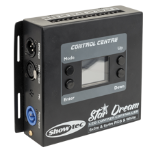 The Showtec Star Dream is a black molton cloth with built-in LEDs (8 groups) and LED controller to create a starry sky. It is available in different sizes and LED types (white and RGB). It is also fully compatible with Wentex Pipe and Drape. The backdrop curtain is equipped with hook and loop and eyelets. The Star Dream has several operating modes such as Auto, Sound and Master/Slave. Control via DMX is also no problem (3-pin XLR in- & out).