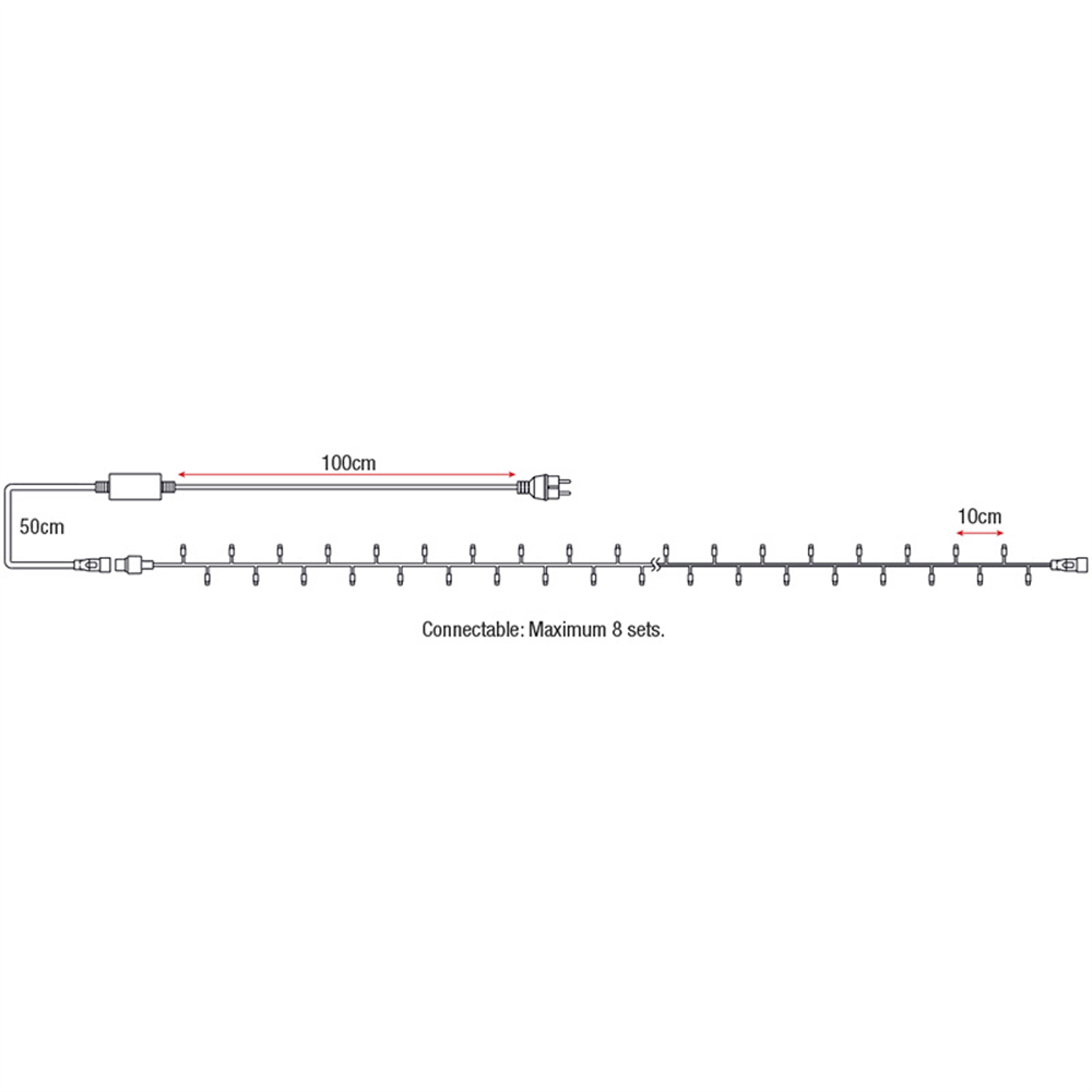 LED-gummistrenge lyset er et populært og dekorativt lys, der kan bruges flittigt til sæsonbestemt dekoration. På grund af det robuste gummikabel kan lysstrenge bruges udendørs og kan opnå en IP-klassificering på IP66. Maksimalt 16 sæt kan forbindes sammen på en strømledning. Levering inkluderer en strømledning.