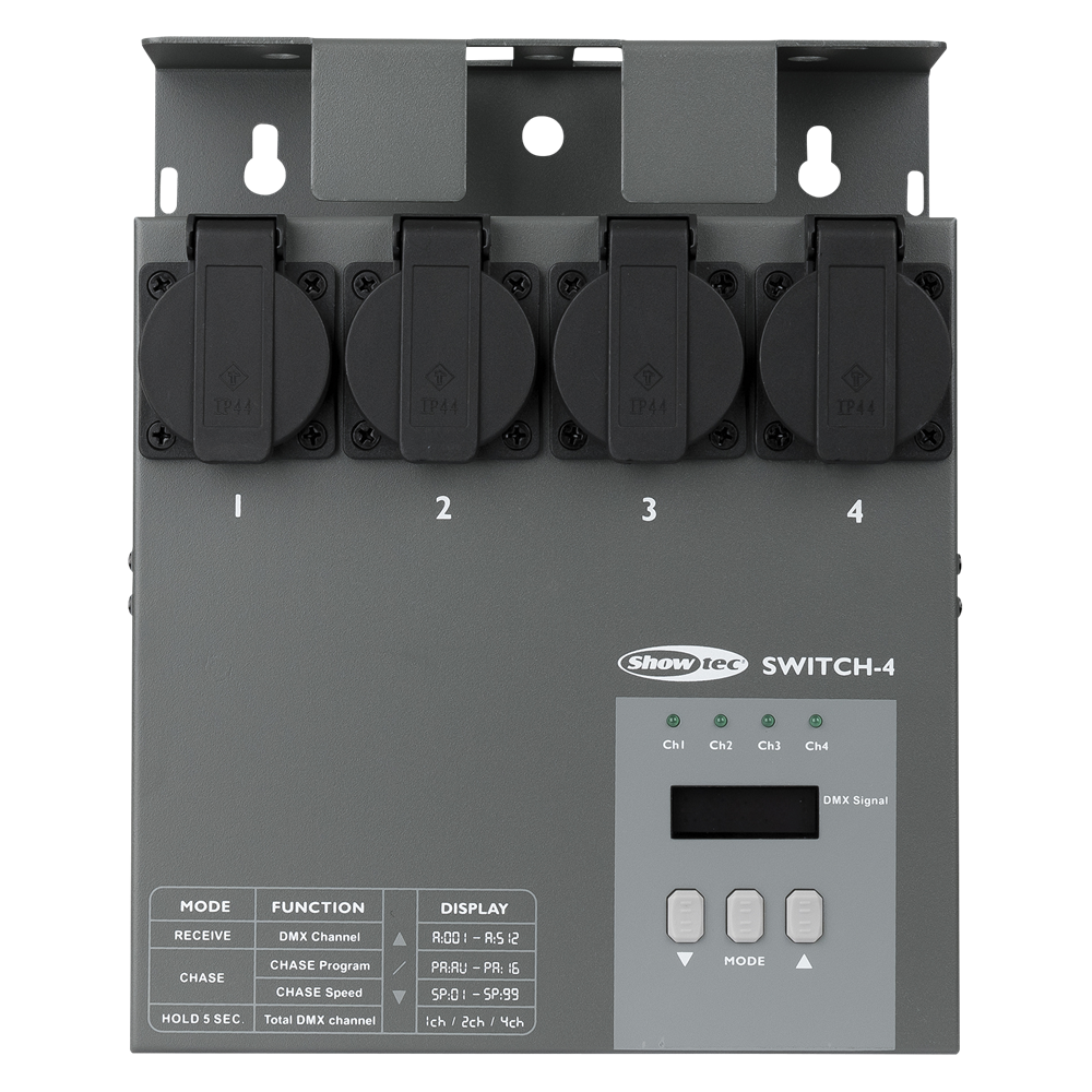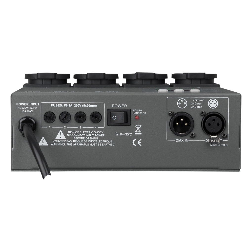 DMX512 4-Ch. tænd/sluk-pakke med 16 indbyggede programmer og andre nyttige funktioner: hastighed/selvstændig/Mester/Slave.