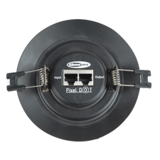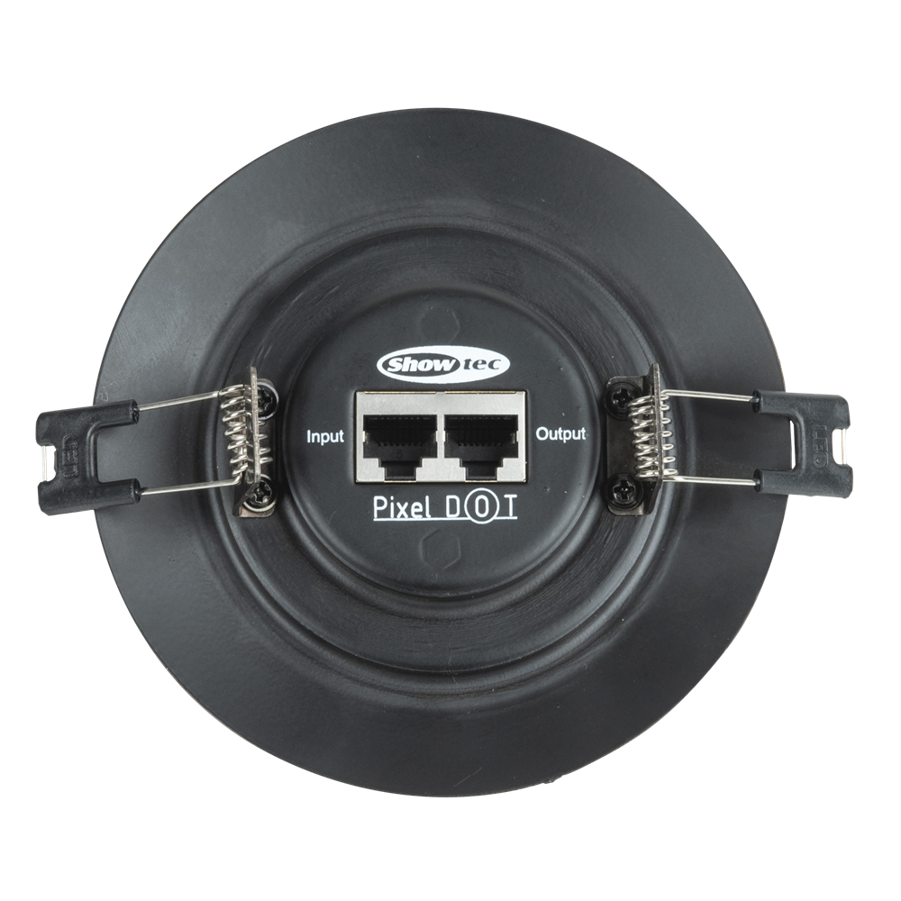 Showtec Pixel Dot er en kædeforbundet RGB LED-punkt med sort hus og en hvid matteret 50 mm (2") dækning, egnet til farveblanding i faste installationer. Drevet af den dedikerede Pixel Controller kan Pixel Dot nemt kædes sammen på hvilken som helst måde ved hjælp af et enkelt Cat-kabel op til 40 enheder pr. Pixel Controller-output og op til 160 Pixel Dots pr. controller. Udstyret med fjederklips er installationen af Pixel Dots lige så let som almindelige indbyggede spotlights. Et 50 cm (1,64 ft) RJ45-kabel medfølger.