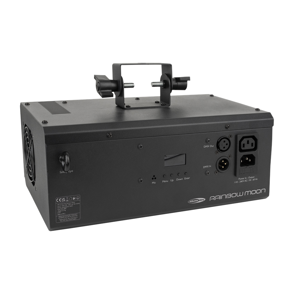 Rainbow Moon kan styres via 4 eller 6 DMX-kanaler, har en master/slave-tilstand og en lydstyret tilstand til selvstændig drift. De 12 mønstre kan vælges individuelt via DMX.